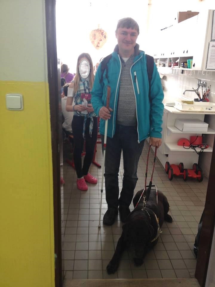 Protože tomu počasí přálo, pro zpestření a obohacení tohoto programu dorazil i vodicí pes jménem Crusoe. Uvelebil se za přítomnosti svého pána v prostorách našeho malého atria a okamžitě si získal všechna přítomná dětská srdce. Každé stanoviště bylo velmi zajímavé a poučné a vyměřený čas byl neúprosný, ale ze stanoviště, kde čekal Crusoe, se dětem obzvlášť těžce odcházelo.