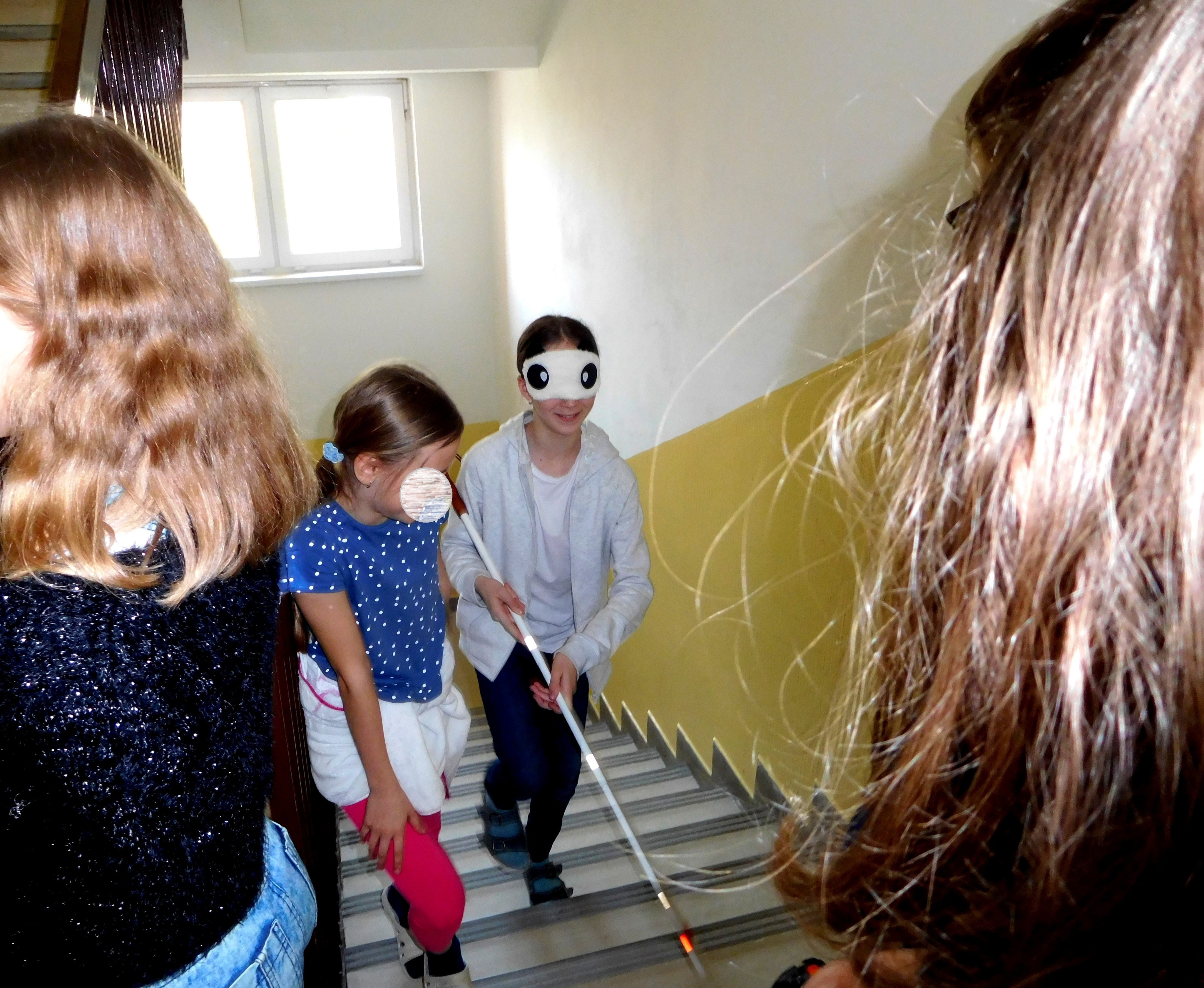 Výukový program se tentokrát týkal žáků čtvrtých ročníků, kteří si na několika stanovištích mohli vyzkoušet chůzi s bílou holí a orientaci nevidomého v prostoru, simulaci různých očních vad pomocí tzv. simulačních brýlí, pomůcky denní potřeby např. pro uvaření čaje či praní prádla, měření aj., stroj na psaní Braillova písma, ale také mobilní aplikace a moderní technologie určené zrakově postiženým lidem.