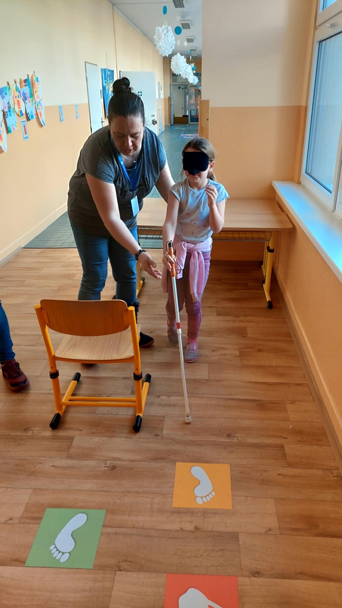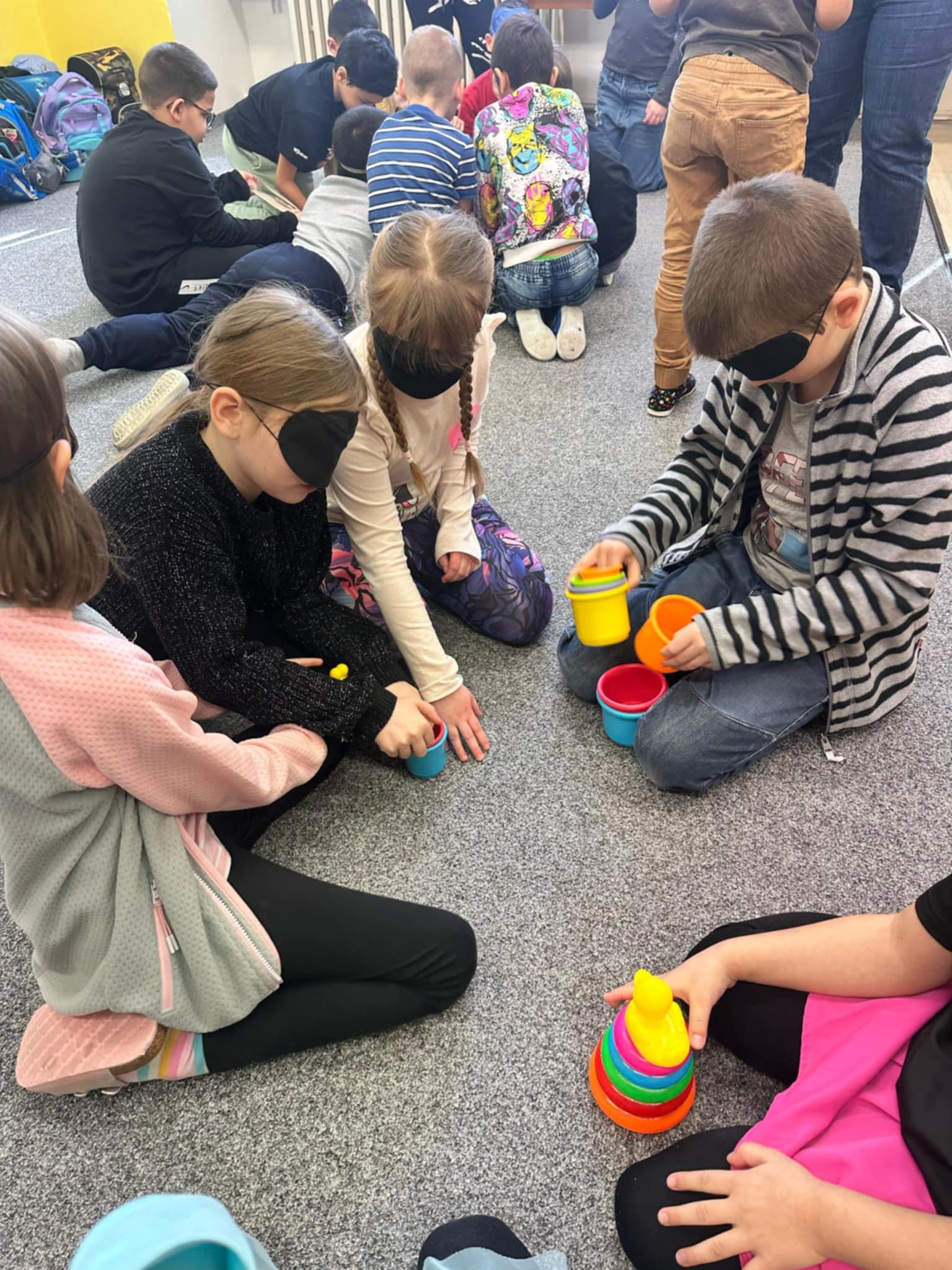 Navštívili jsme ZŠ Petlérská v Klášterci nad Ohří, kam nás pozvaly paní učitelky ze tříd 2.A a 2.B. Pro děti jsme si připravili osvětu o tom, jak se žije lidem s postižením zraku. Dětem jsme ukázali různé ozvučené pomůcky pro nevidomé a zrakově postižené, seznámili jsme je s Braillovým písmem a všechny si mohly vyzkoušet brýle, které simulují různé zrakové vady. Také jsme jim vyprávěli o tom, jak zrakově postiženým pomáhají vodící psi a jak se k pejskům chovat. Potom jsme jim rozdali různé hry a děti si nasadily masky na oči a zkoušely si, jak se jim daří skládačky a hry hrát bez pomoci zraku. Nakonec si všechny děti vyzkoušely chůzi s maskou na očích a s bílou holí. Prošly si trasu mezi židličkami. Dětem se vše velmi líbilo, nakonec měly i plno otázek, zajímaly se o praktické věci, se kterými se zrakově postižení potýkají. I pro paní učitelky byla naše přednáška zajímavá a velmi ji ocenily. Nakonec jsme od dětí dostali malý dárek.