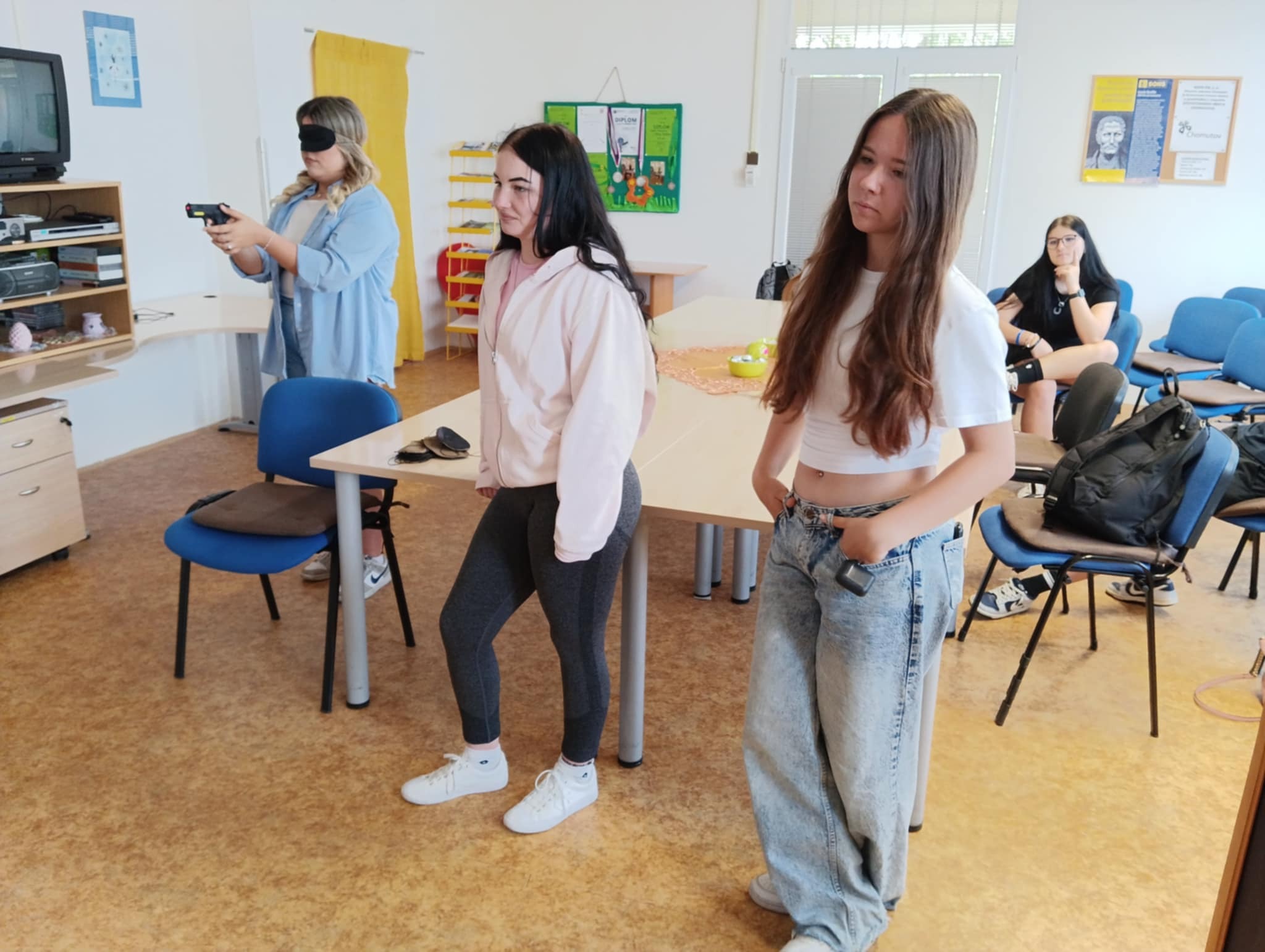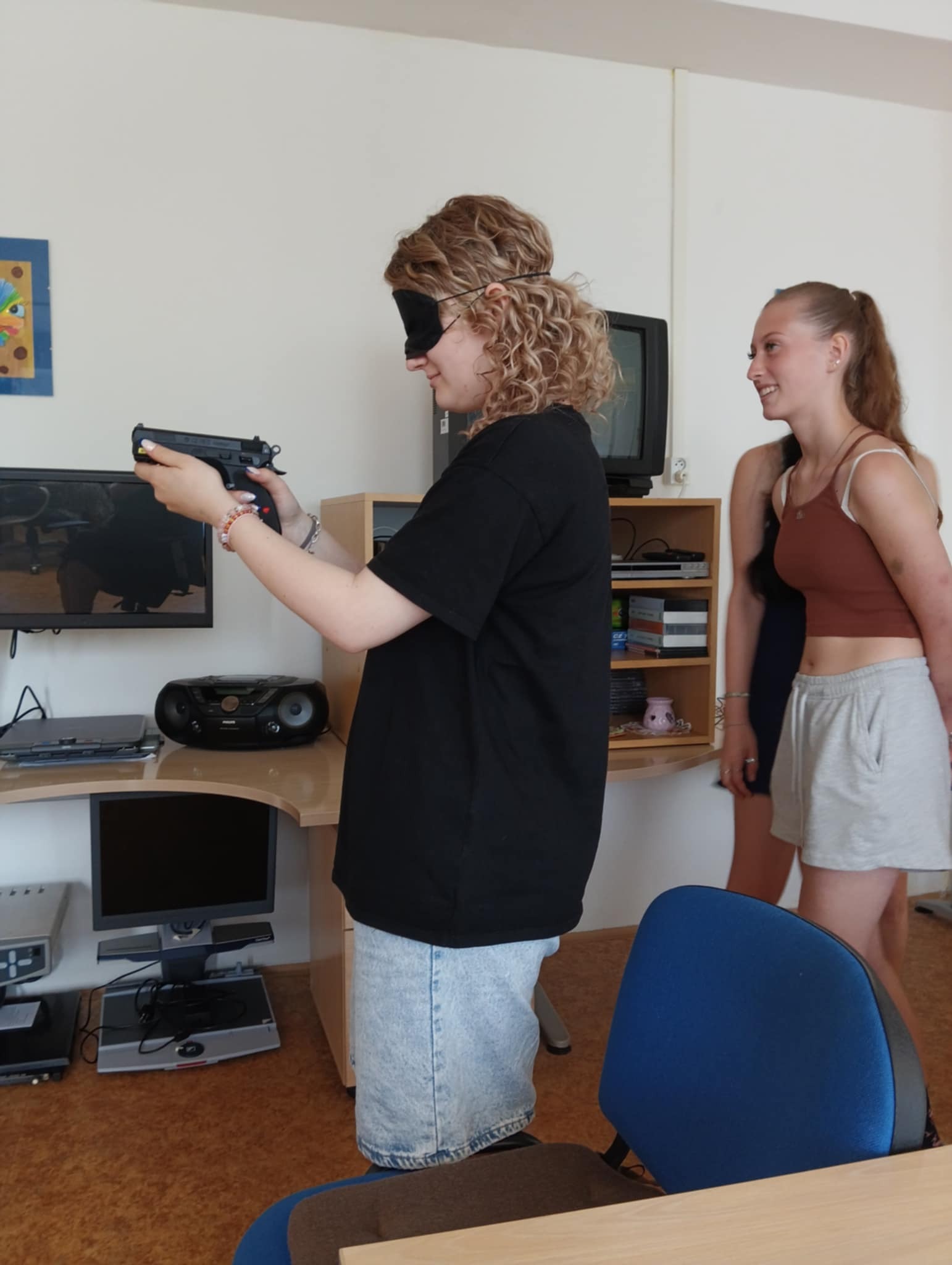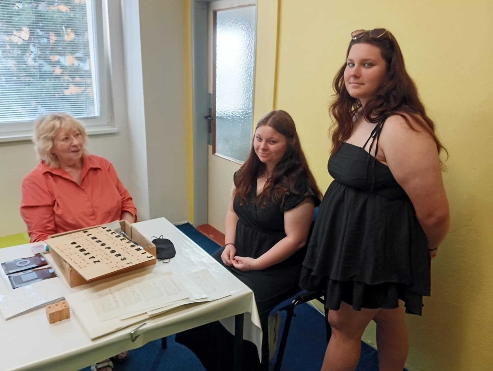 Dnes jsme uspořádali osvětu pro další třídu SZŠ, konkrétně pro třídu PS 1A, tedy pro budoucí praktické sestry. Nejdříve jsme studenty i studentky přivítali na naší odbočce SONS a seznámili jsme je s naší organizací a s tím, co zde poskytujeme za služby. Na PC shlédli prezentaci naší organizace i odbočky. Následně jsme jim přehráli na videu krátký film Vidíme ty, kteří nevidí. Potom se studenti rozdělili do čtyř skupin a my jsme jim přichystali čtyři stanoviště, kde si mohli vyzkoušet různé hmatové a zvukové pomůcky, chůzi s bílou holí, zvukovou střelbu a brýle simulující zrakové vady. Za pomoc děkujeme našim členům, kteří nám na jednotlivých stanovištích pomohli při dnešní osvětě. A to Věrce Mocové a Alence Burdové, které předvedly studentům ozvučené a hmatové pomůcky a také si na tomto stanovišti mohli zahrát hmatové Člověče nezlob se. A také Lídě Hartanové u které si všichni mohli vyzkoušet brýle simulující zrakové vady a také se škraboškou na očích osahat různé haptické pomůcky a obrázky. A ještě se na tomto stanovišti seznámili s Braillovým písmem. Studenti si u nás dnešní den užili a odcházeli plni dojmů a nových poznatků ze světa nevidomých a slabozrakých.