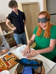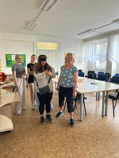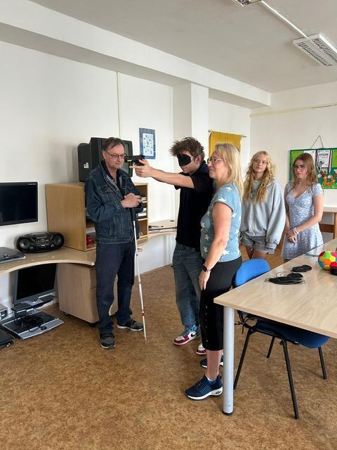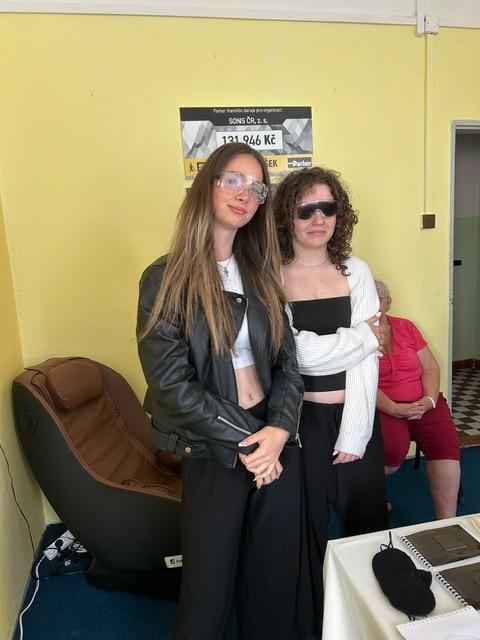 Dnes jsme uspořádali osvětu pro další třídu SZŠ, konkrétně pro třídu PS 1B, tedy pro budoucí praktické sestry. Nejdříve jsme studenty i studentky přivítali na naší odbočce SONS a seznámili jsme je s naší organizací a s tím, co zde poskytujeme za služby. Na PC shlédli prezentaci naší organizace i odbočky. Následně jsme jim přehráli na videu krátký film Vidíme ty, kteří nevidí. Potom se studenti rozdělili do čtyř skupin a my jsme jim přichystali čtyři stanoviště, kde si mohli vyzkoušet různé hmatové a zvukové pomůcky, chůzi s bílou holí, zvukovou střelbu a brýle simulující zrakové vady. Za pomoc děkujeme našim členům, kteří nám na jednotlivých stanovištích pomohli při dnešní osvětě. A to Evě Valdmanové, která studentům ukázala, jak probíhá trénink zvukové střelby a postupně si všichni mohli střelbu vyzkoušet a i Dušanu Denemarekovi, který předvedl studentům ozvučené a hmatové pomůcky a také si na tomto stanovišti mohli zahrát hmatové Člověče nezlob se. Také jim předvedl Pichtův psací stroj a Braillovo písmo. A také Jitce Čiperové a Marcele Prollové, u kterých si všichni mohli vyzkoušet brýle simulující zrakové vady a také se škraboškou na očích si osahat různé haptické pomůcky a obrázky. Po všechny tři dny této osvěty pro SZŠ si všichni studenti mohli vyzkoušet chůzi s bílou holí a to za pomoci naší pracovnice Jarmilky Brzybohatě. Studenti si u nás dnešní den užili a odcházeli plni dojmů a nových poznatků ze světa nevidomých a slabozrakých. Odměnou za tuto osvětu nám bylo velmi milé poděkování, jak od studentů, tak paní učitelek a budeme se těšit na další spolupráci při sbírce Bílá pastelka.