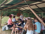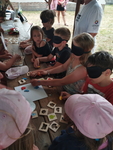 Na fotografiích je zachycena aktivita „svačina poslepu“, která byla součástí osvětového programu SONS Rokycany v pionýrském táboře Hrádek u Rokycan. Děti si se zavázanýma očima vyzkoušely, jaké to je dojít ke stánku, převzít si občerstvení a odnést si jej bezpečně na místo. Při této činnosti se musely spoléhat na pomoc kamarádů a vlastní orientaci v prostoru. Aktivita podpořila spolupráci, důvěru mezi účastníky a empatii k lidem se zrakovým postižením.