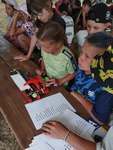 Na fotografiích je zachyceno slavnostní předávání certifikátů během osvětové akce SONS Rokycany v pionýrském táboře Hrádek u Rokycan. Děti obdržely certifikáty empatie, které ocenily jejich aktivní zapojení do programu a schopnost vcítění se do světa lidí se zrakovým postižením. Atmosféra byla přátelská a plná radosti, děti si se zájmem prohlížely předávané listiny a sdílely dojmy z celého dne. Tento závěrečný moment krásně završil osvětový program a upevnil poselství solidarity a porozumění.
