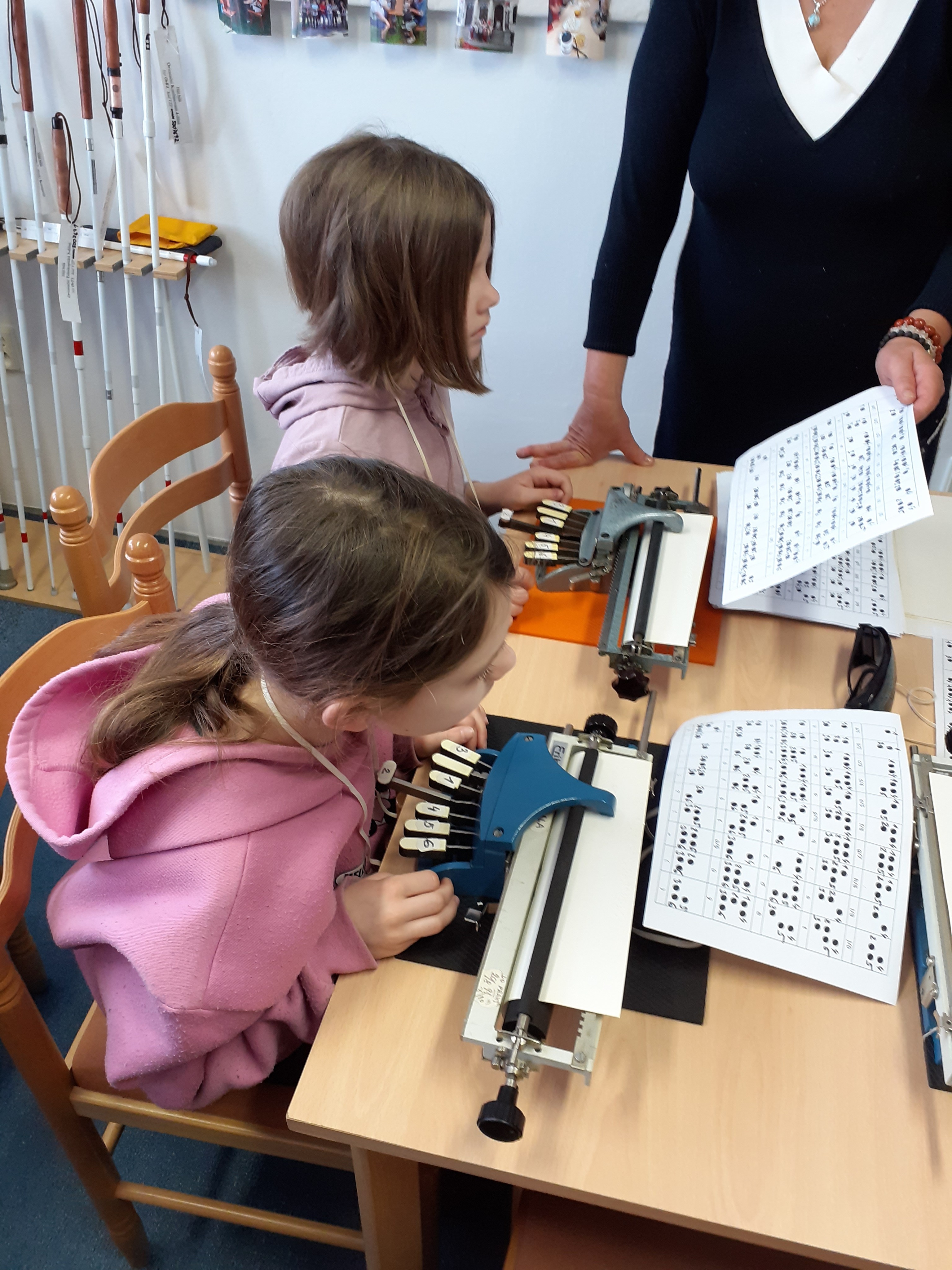 Dne 25. 3. jsme na naší odbočce přivítali děti ze základní školy z Dobré. Pro děti jsme připravily 4 stanoviště, na kterém si mohly vyzkoušet své všechny smysly kromě zraku. U aktivit měli škrabošky přes oči a mohly si tak vyzkoušet a vcítit se do nevidomého jedince. Děti si tak vyzkoušely různé kompenzační pomůcky, zahrály si stolní hru "Plný kurník" s reliefními prvky, řešily reliéfní hlavolamy, procvičily sluch u zvukového pexesa a zkusily si psaní na pichtovém stroji. Získaly plno informací o světě nevidomých a jejich braillově písmě.