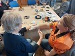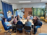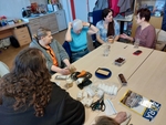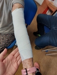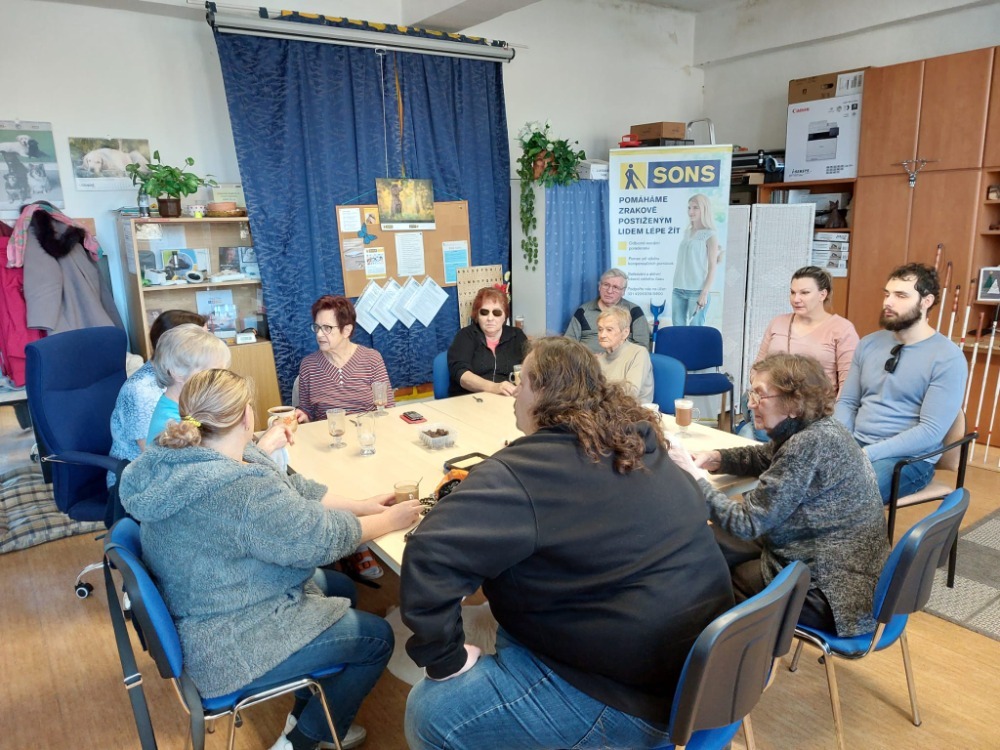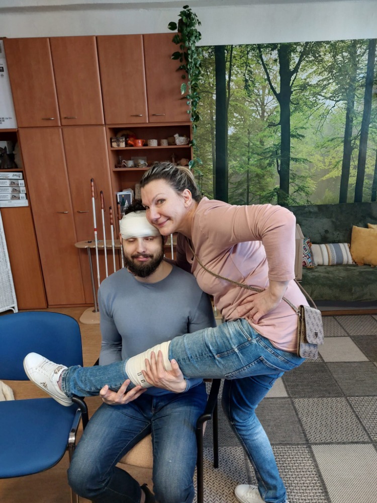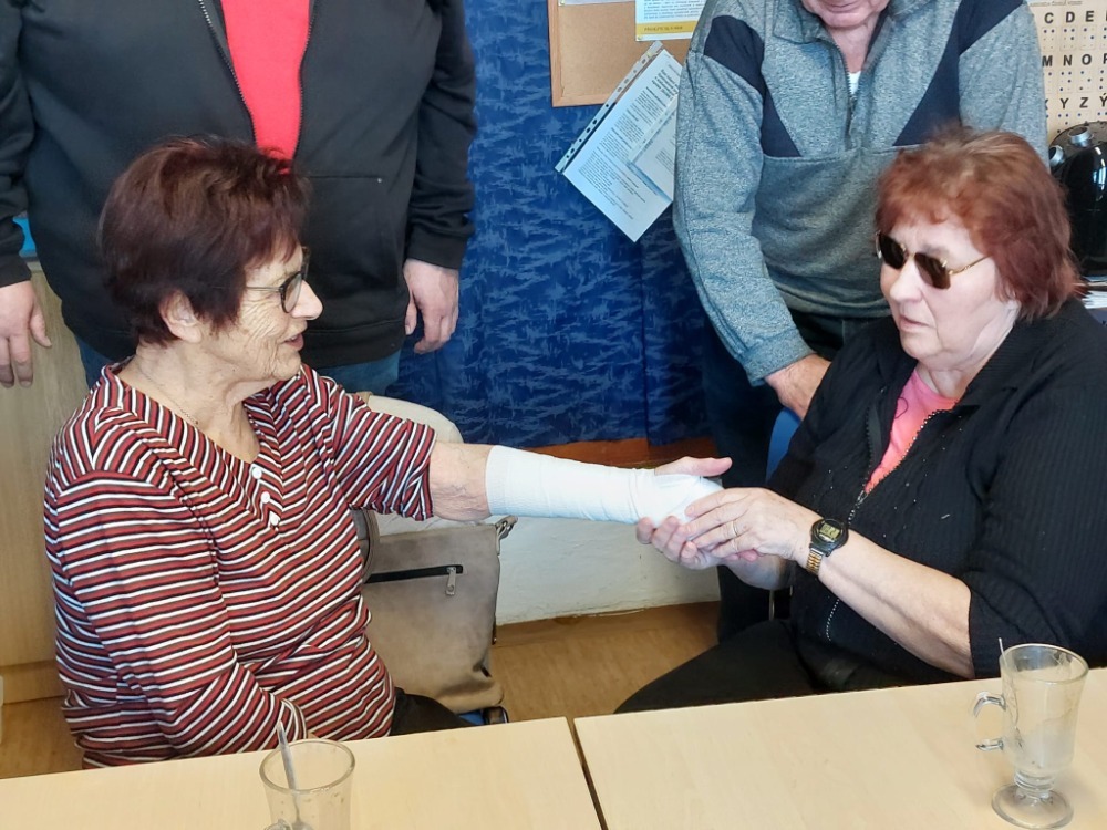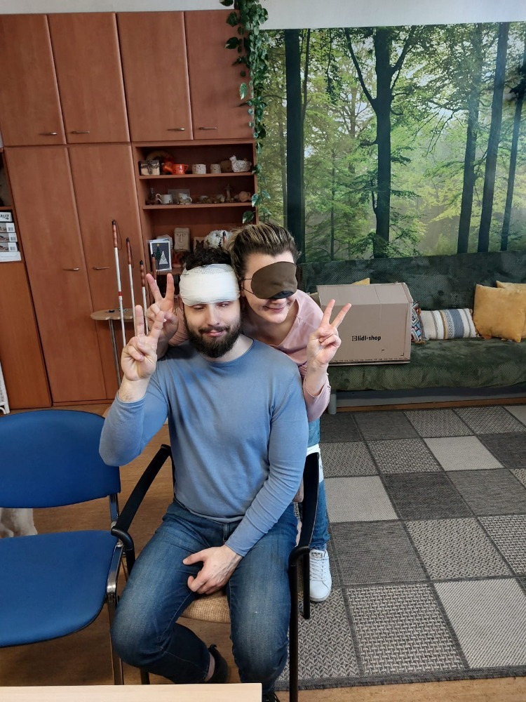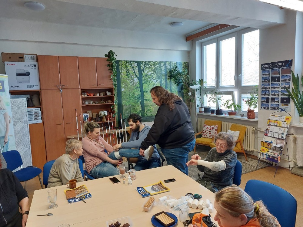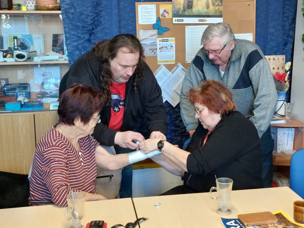 4. března jsme se opět sešli na odbočce se záchranářem Petrem Miklášem. Tentokrát jsme se vrhli na otevřené rány. Nebojte, všichni vyvázli bez zranění, zato pořádně zafáčovaní. Naučili jsme se používat čepičku na úraz hlavy, obvázat ruce, nohy i záludné prsty. Dokonce se mezi námi objevila utajená bývalá zdravotní sestřička. Prozradil ji totiž ukázkový takzvaný "klasový" obvaz. Od Petra jsme se dozvěděli spoustu poučných historek z terénu. Důležitost tématu tentokrát podtrhli i oba vodicí pejsci, Prada a Charlie a to tím, že byli zcela nezvykle klidní a tiší. Při minulé besedě se sice některým z nás Andulu umáčknout nepodařilo, ale v obvazových technikách uspěli všichni. Už teď se těšíme na další témata, která nám přinesou nejen zábavu ale i poučení.