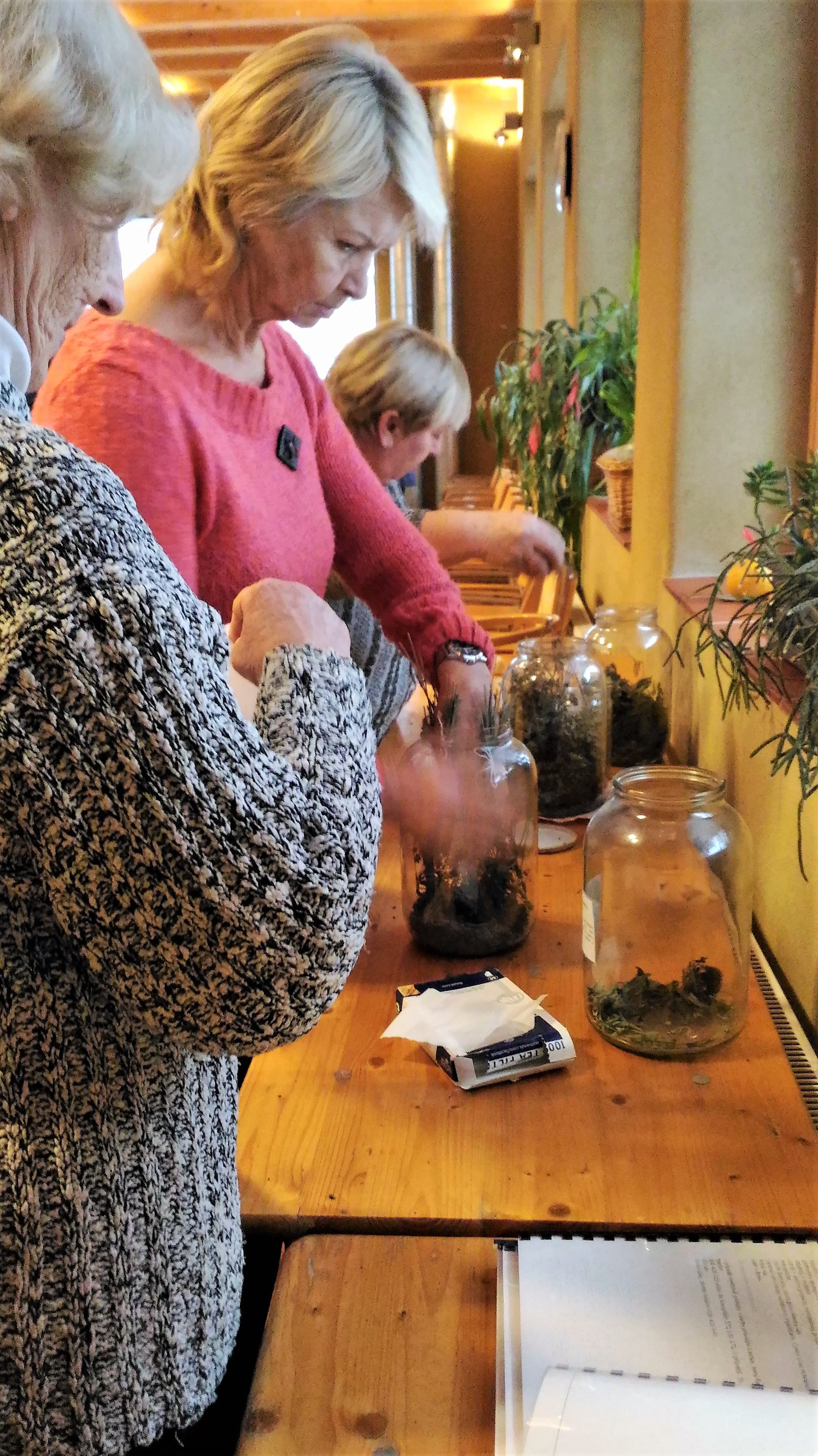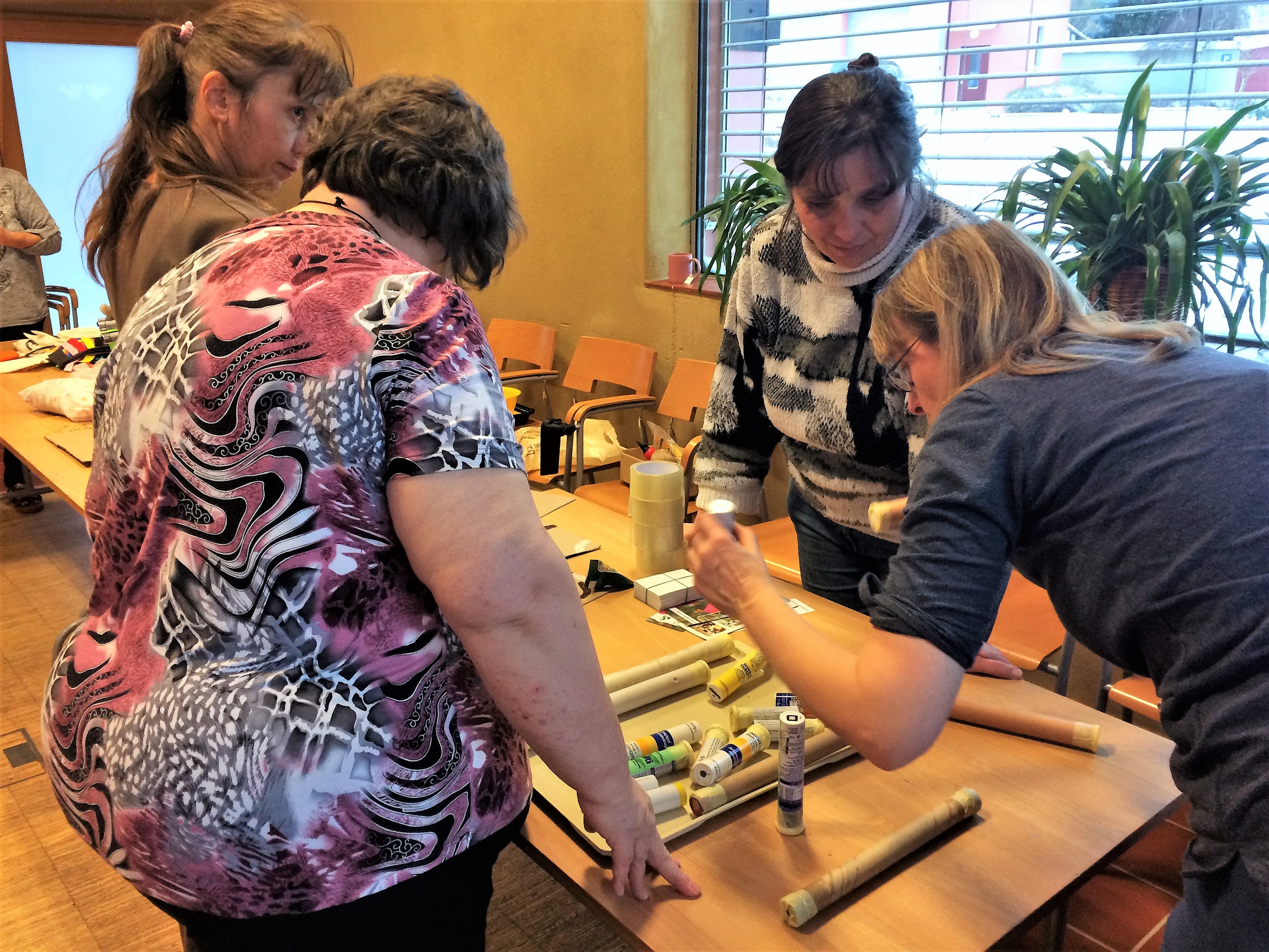 Program začal první den po obědě přednáškou o zahradní terapii s paní Ing. Galle. Ta nám povyprávěla o možných aktivitách v rámci této terapie, a přesto, že venku byl sníh a my museli zůstat vevnitř, mohli jsme si vyzkoušet „zimní aktivity“, např. výrobu vlastního bylinkového čaje, tvorbu bludiště a puzzle z přírodnin nebo zvukové pexeso ve formě různých druhů semínek. Poté následovala přednáška o zimní přírodě a fauně Bílých Karpat. Den jsme zakončili muzikoterapií. Paní lektorka s sebou přivezla spoustu nástrojů – bubnů, dřívek, zvonečků i píšťal, na které jsme si společně zahráli. Nakonec nám také předvedla hru na tibetské mísy, u které jsme se všichni krásně zrelaxovali.