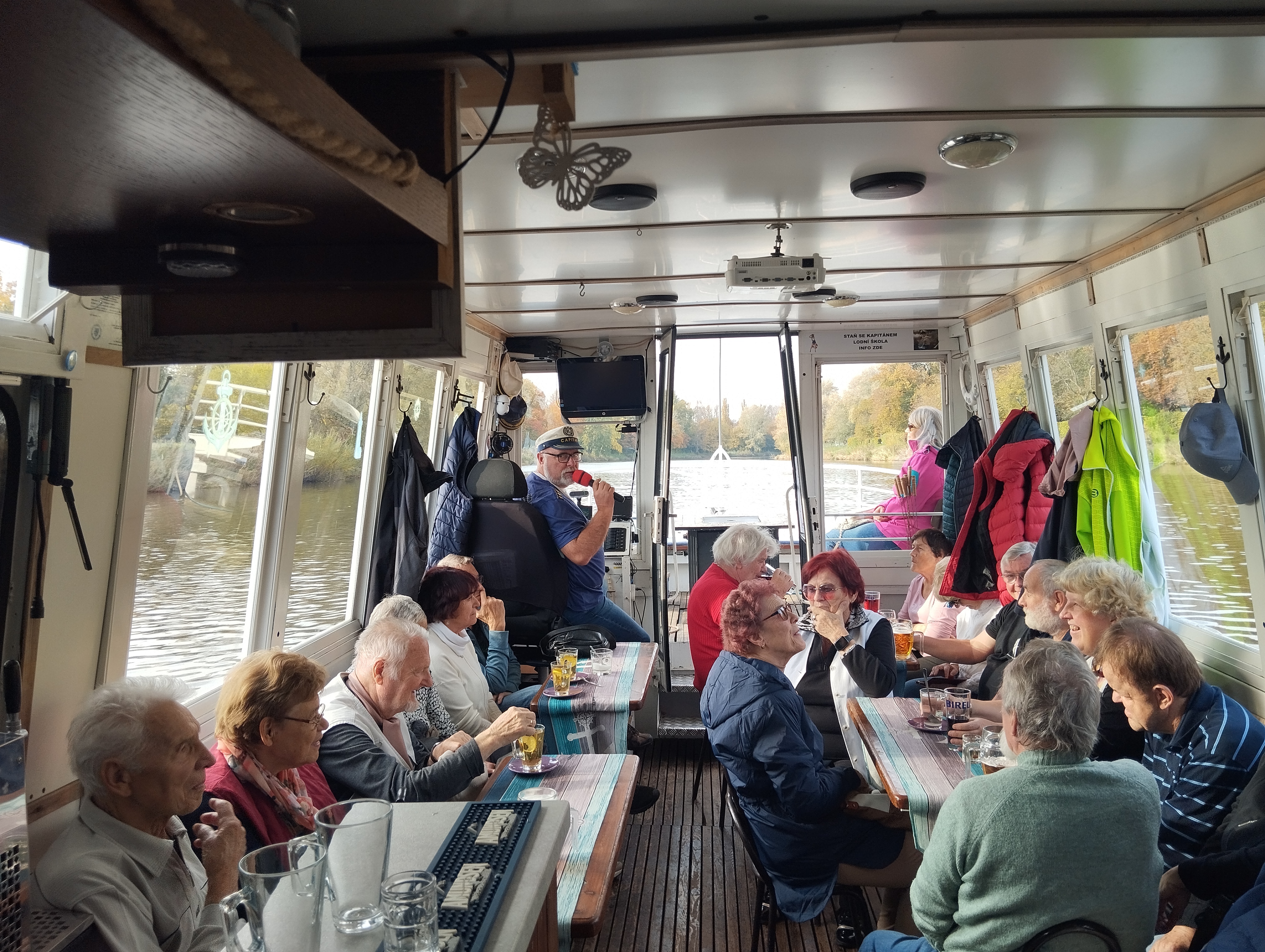 Jako tradičně i letos jsme se prošli a hlavně napili zdravé vody z veřejných pramenů a procházkou po kolonádě nasáli místní klidnou atmosféru. Po velkém úspěchu vyjížďky na lodi Korkorán z minulého roku, jsme tuto plavbu zařadili i letos do plánu. Plavba byla opět úžasná a nalodění i vylodění s našim handicapem proběhlo, ač se někteří obávali, bez problémů.
