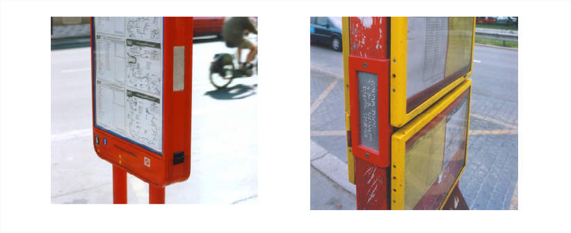 S ohledem na cílovou skupinu a pokrytí informacemi maximální množství cestujících je nutné např.: na označníku autobusového terminálu nebo nádraží osadit štítek jak s braillským textem, tak i s reliéfním popisem (tzn. např.: s informací nástupiště 2 v kontrastním, dobře hmatném reliéfním písmu a současně i v braillském písmu).