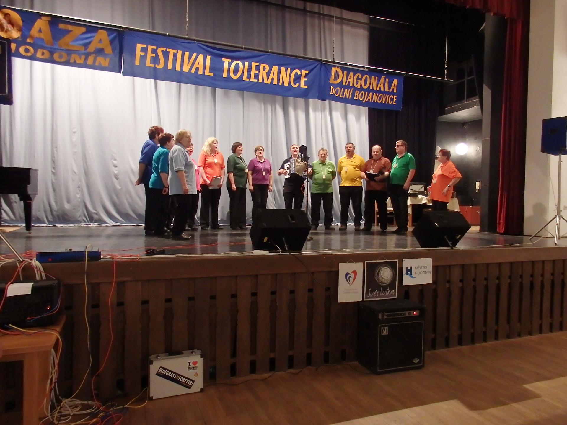 Večer pak program pokračuje v sále Kulturního domu v Dolních Bojanovicích. Na Festivalu TOLERANCE vystupují zdravotně postižení muzikanti a jejich přátelé. Letos jsme nechyběli a udělali jsme dobře, protože příjemně působilo četné publikum a kvalitní bylo i vystoupení kolegů - opravdu zdařilý večer. A ještě když máte možnost se potkat se známými, nové lidi poznat a v noci odjíždět s vědomím že i vy se svým zrakovým handicapem dokážete rozdávat úsměvy a pohodu - co více si přát.