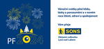 "Na obrázku je noční krajina, na obloze bouchá barevný ohňostroj. Pod ním jsou tři stromy, prostřední je vánočně ozdoben. Nula v letopočtu 2024 má podobu oka. Autorkou návrhu je Markéta Evjáková."