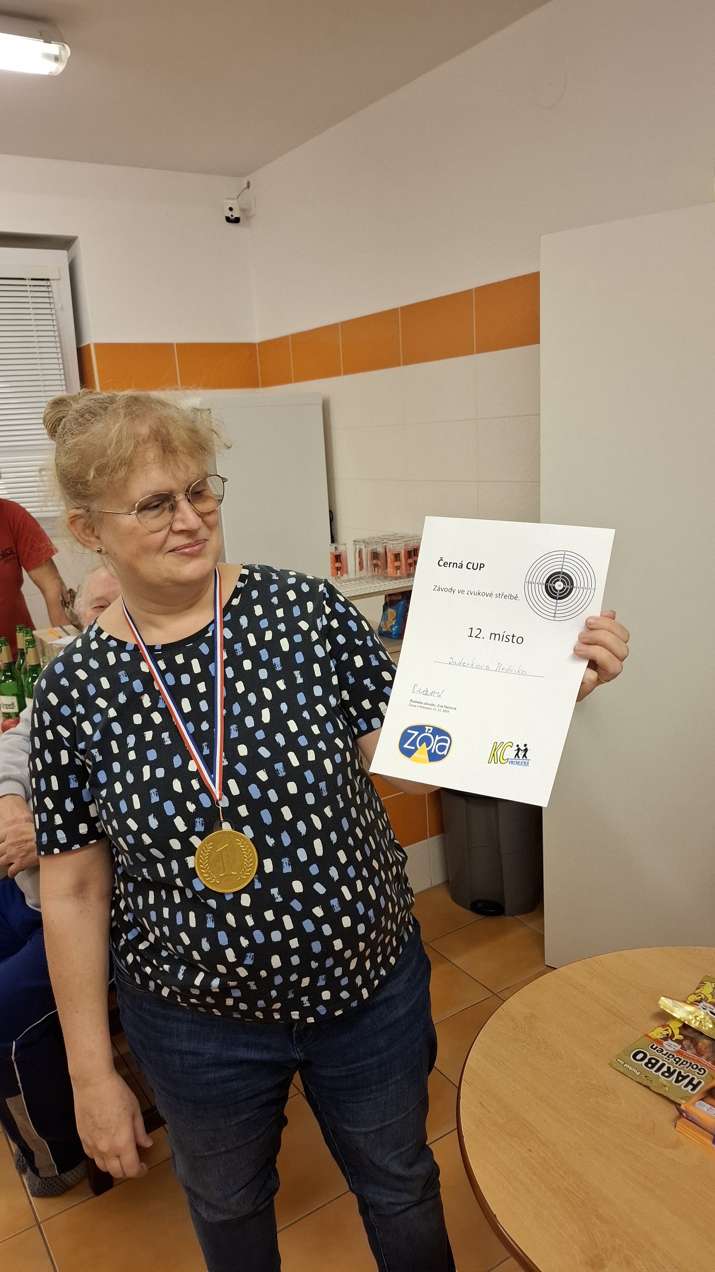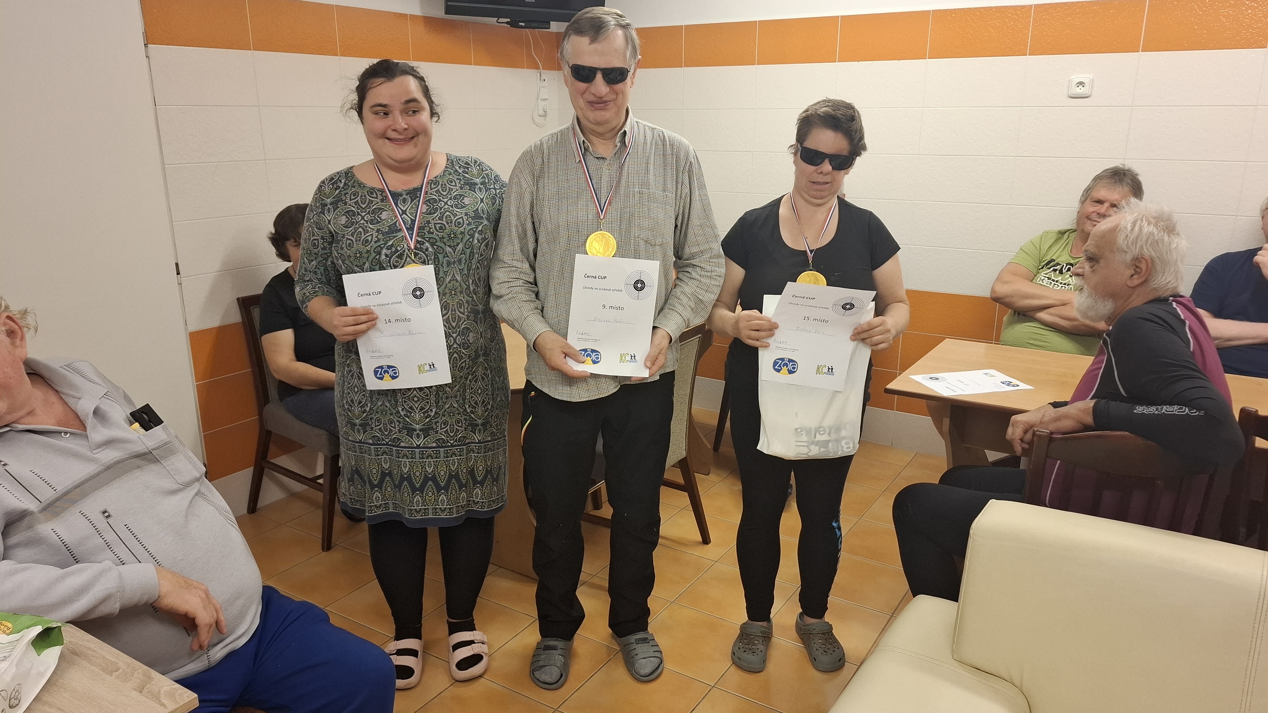 Přátelské prostředí, ochotný personál, skvělá kuchyně, spousta možností, jak trávit svůj čas – člověk se ani nenadál a byl tu závěrečný večer. Eva s Karlem sečetli body, které střelcům během tréninků pilně zapisovali, a došlo na vyhlášení výsledků. Diplomy a medaile si zasloužili všichni, ale někdo byl přece jen nejlepší. Absolutní vítězkou se stala zkušená střelkyně Zuzka Duchoňová z TJ Zora Praha; mužem, který nasbíral nejvíc bodů, byl téměř nováček Michal Oppelt také z TJ Zora Praha. A za největší pokrok, kterého během pobytu ve střelbě dosáhly, byly oceněny úplné začátečnice Petra Dušková a Klára Maršálková.