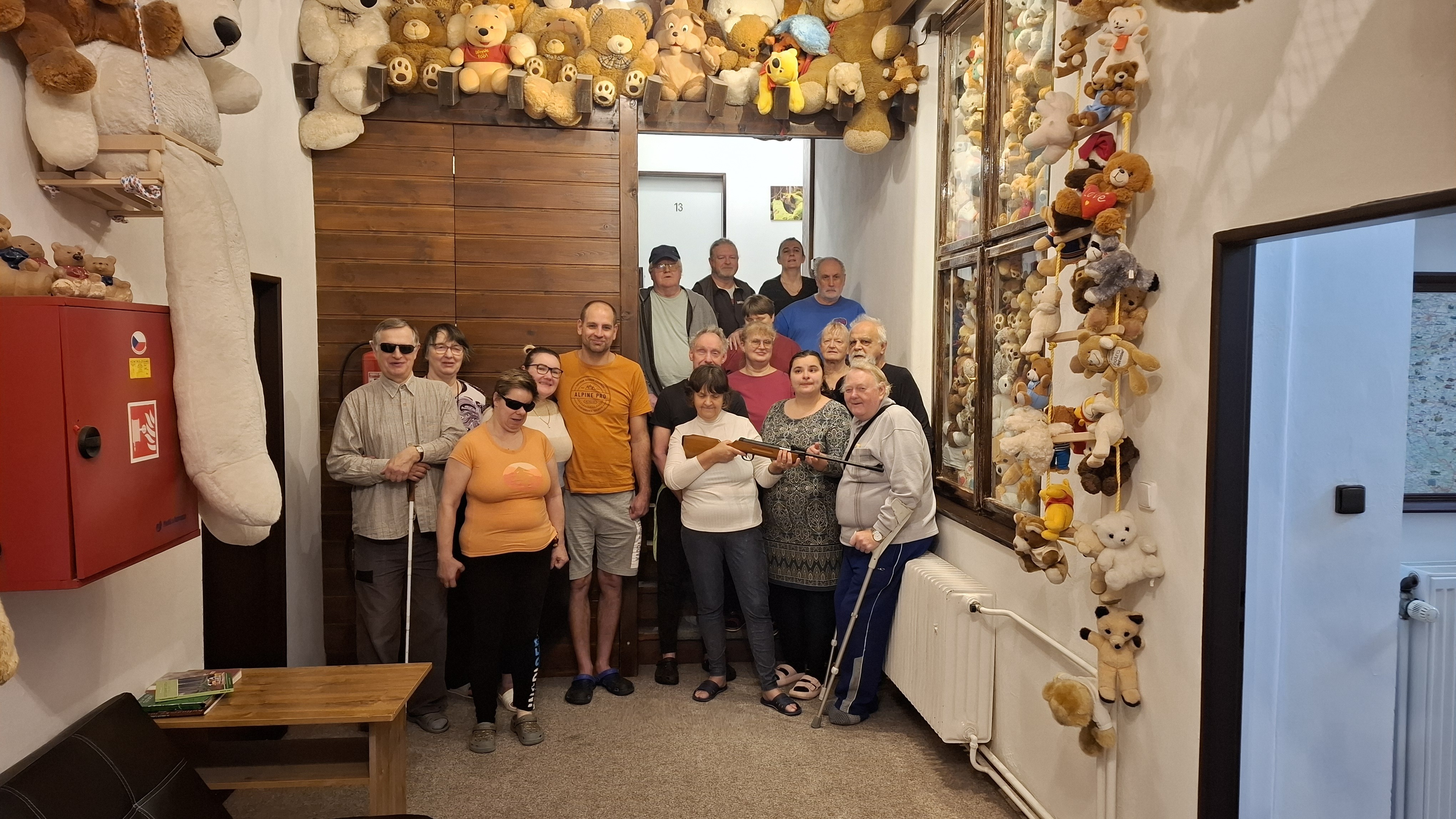 A proč ti medvědi? Protože soustředění se konalo téměř na břehu lipenského jezera, v Černé v Pošumaví, v penzionu U Méďů. A tam na medvěda narazíte opravdu na každém kroku: plyšoví, dřevění, keramičtí, malí i velcí na vás vykukují z kdejakého výklenku, vyhlížejí z oken, rozvalují se na pokojích a s číslem na bříšku jsou součástí klíčů od nejedněch dveří.