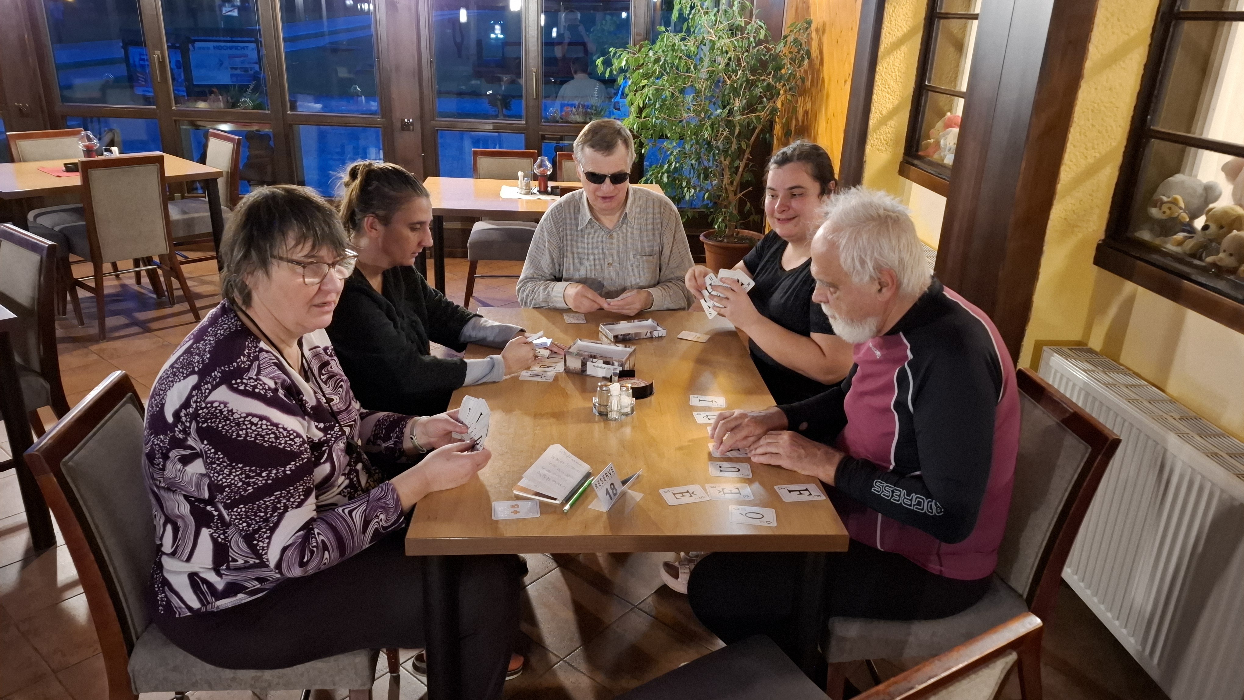 Kdo zrovna netrénoval střelbu, nepodstupoval proceduru nebo nerelaxoval, mohl se věnovat společenským hrám. Někteří tu přišli na chuť Syllabatimu a Slovnímu pokeru – hrám s písmenky z produkce Společenství duševních sportů. K dispozici byly také Qardo, Člověče nezlob se, nebo karty.