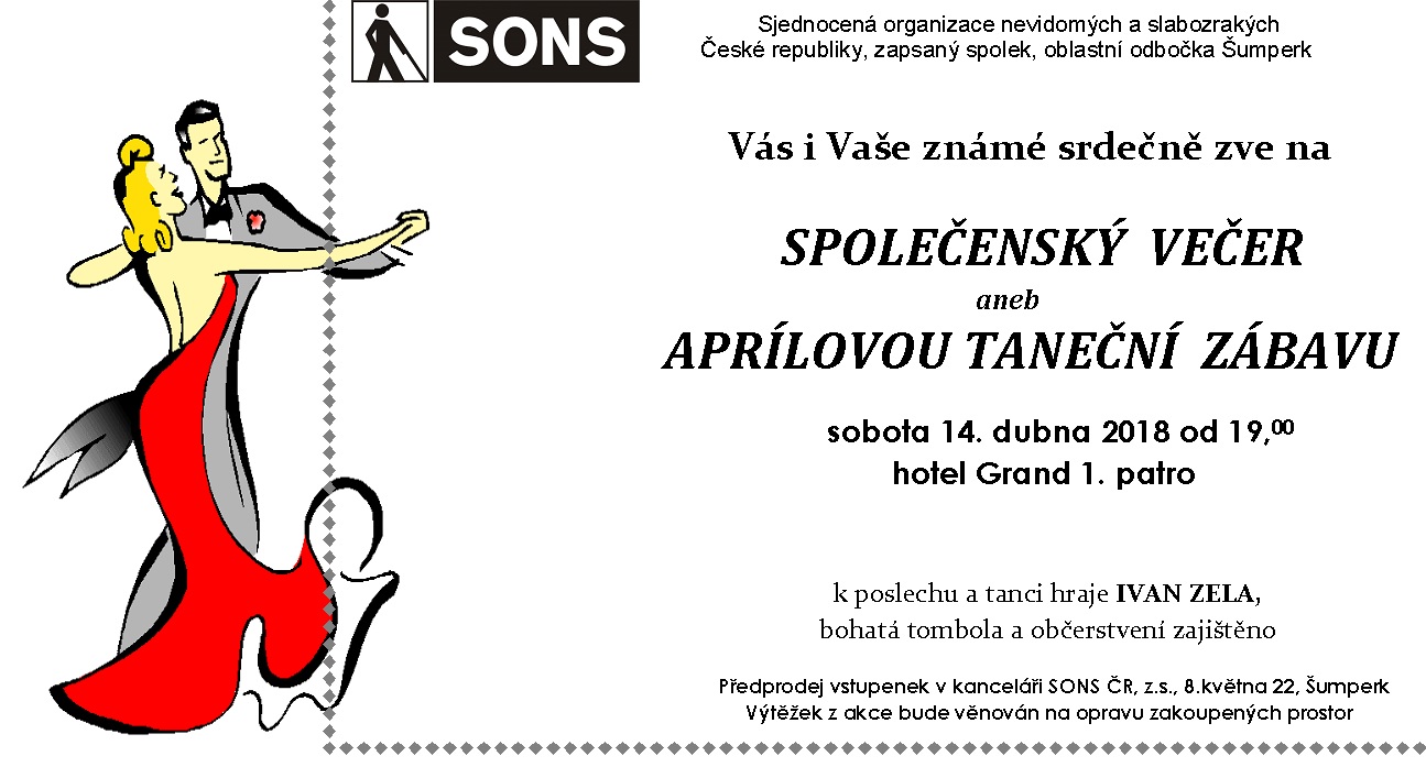 srdečně vás zveme na Aprílovou taneční zábavu, kterou pořádáme v sobotu 14. dubna 2018 od 19 hodin v hotelu Grand v Šumperku.