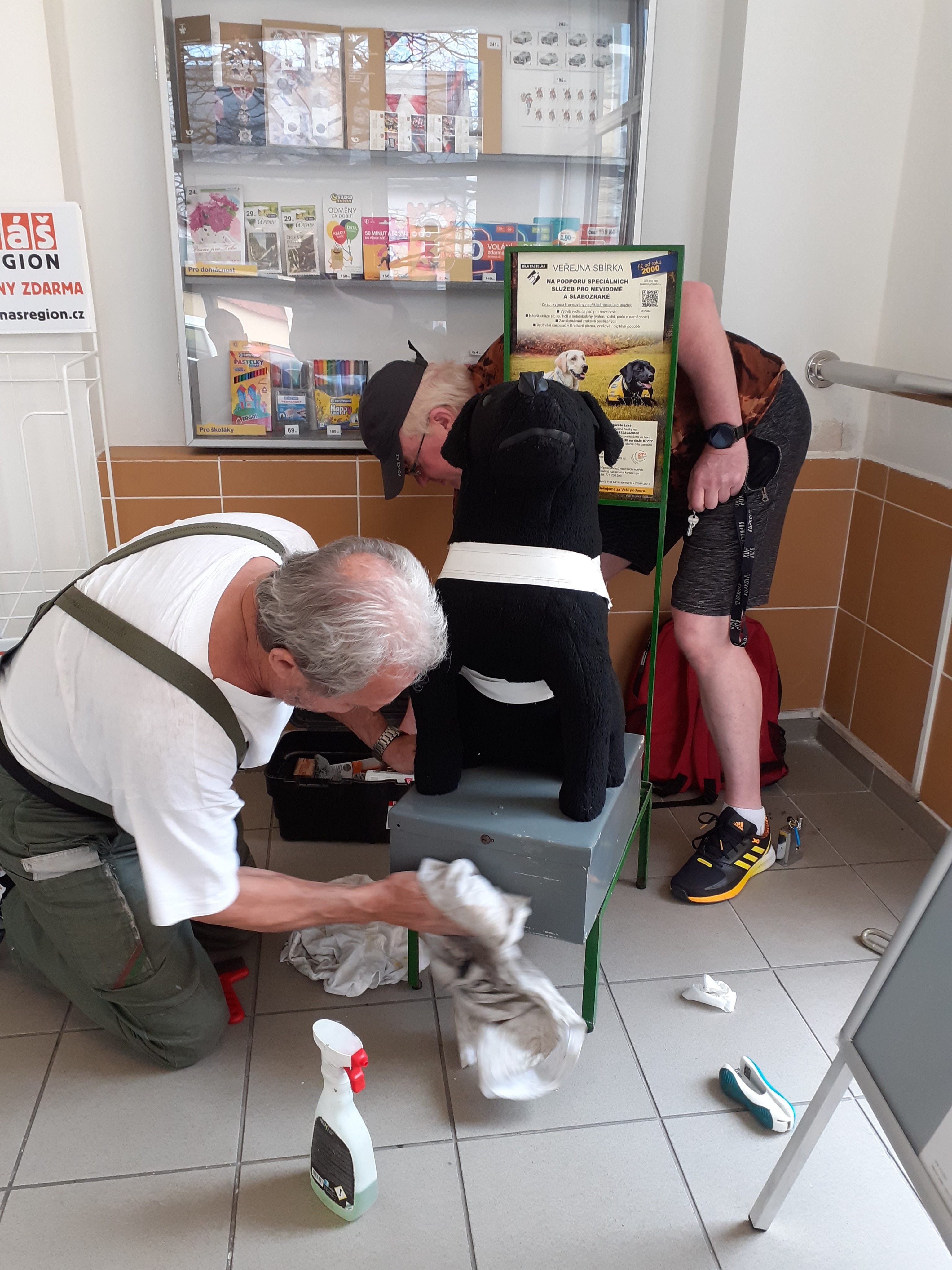 Zpravidla jednou za rok projdou všichni naši plyšoví psí kamarádi důkladnou očistou a kontrolou. Pokladničky byly odborně vybrány a znovu zapečetěny, peníze spočítány, pejsci zkontrolováni, pokladničky očištěny. A letos máme konečně přírůstek nového plyšového psa. Máme z něj velkou radost! Bude s námi chodit na prezentační akce odbočky.