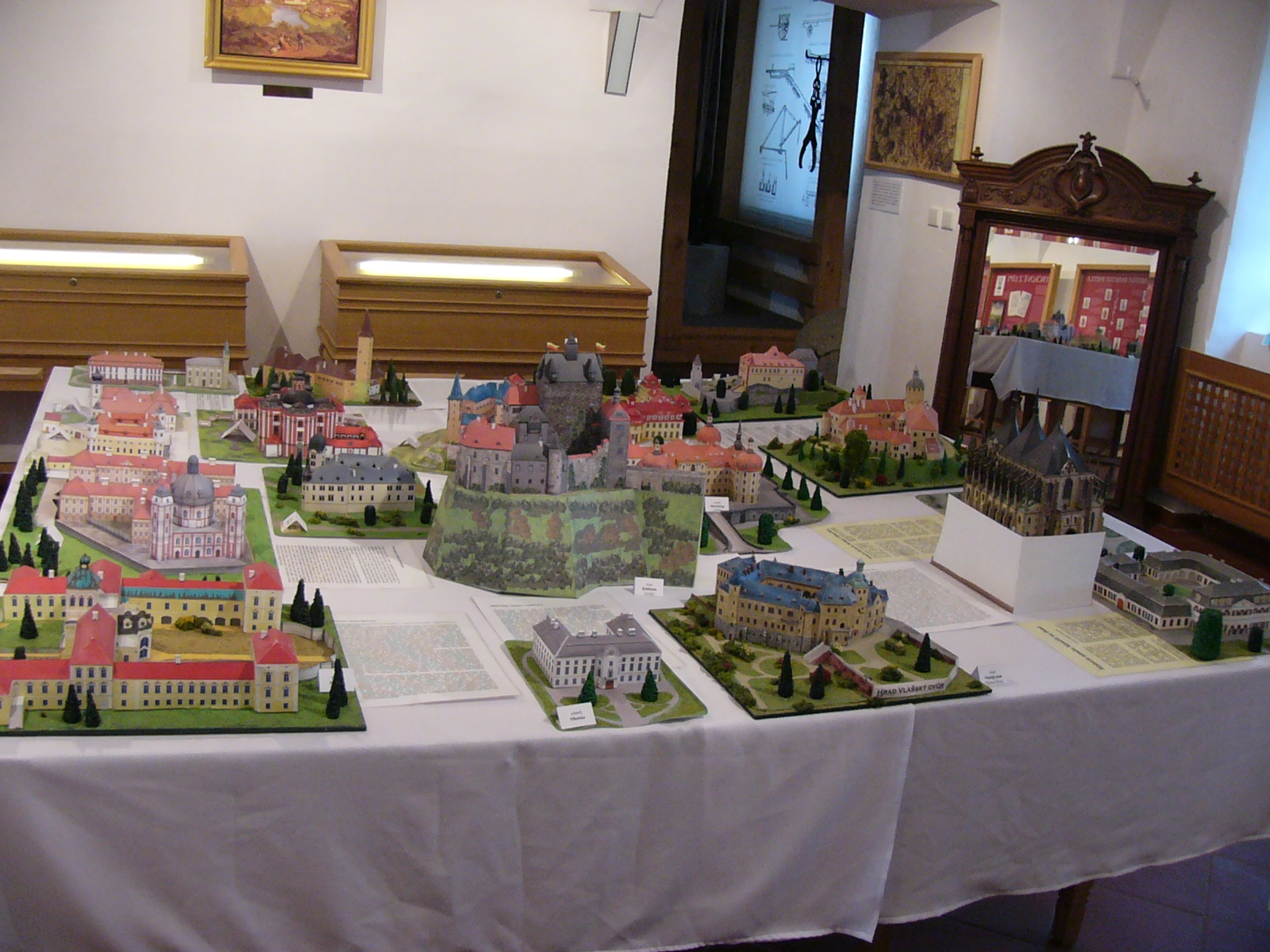 V deset hodin se nás ujala velice příjemná a ochotná paní, možná slečna, průvodkyně a zavedla nás do první místnosti. Tam jsme si- jak to bylo možné- prohlédli velmi hezké papírové modely českých a moravských hradů, zámků, klášterů a historických staveb. Usměvavá průvodkyně nás přivítala a prohlídku zahájila úvodem o historii zámku. Byla však poněkud roztržitá a neustále se ohlížela do průjezdu. Potom jsme už i my zaslechli jakési bušení. Za moment se vše vysvětlilo a návštěvnice, omylem zamčená v pokladně, se ocitla na svobodě.