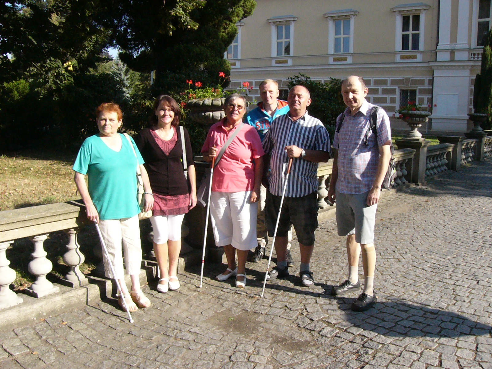 Václav Fikar starší statečně vedl naši skupinu neznámým terénem ulic a náměstí ve Světlé nad Sázavou, Václav Fikar mladší jistil případné opozdilce vzadu. V příjemném prostředí bufetu na náměstí jsme vypili ranní čaj a kávu. O půl desáté jsme došli na zámecké nádvoří, kde uprostřed příjemně šuměla voda ve fontáně. Na paní pokladní jsme raději čekali na sluníčku, protože ze starobylých kamenných zdí průjezdu vystupoval nepříjemný chlad.