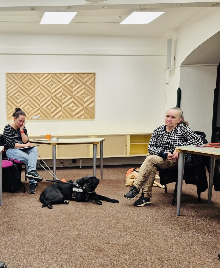.A tak jsme se domluvili s pracovníky pražského Tyflokabinetu a ve čtvrtek 22. ledna se v Klubovně SONS sešlo prvních 5 odvážných, pochopitelně v doprovodu čtyřnohých parťáků.. Předem jsme se domluvili, že budeme s programem pracovat na mobilních telefonech.