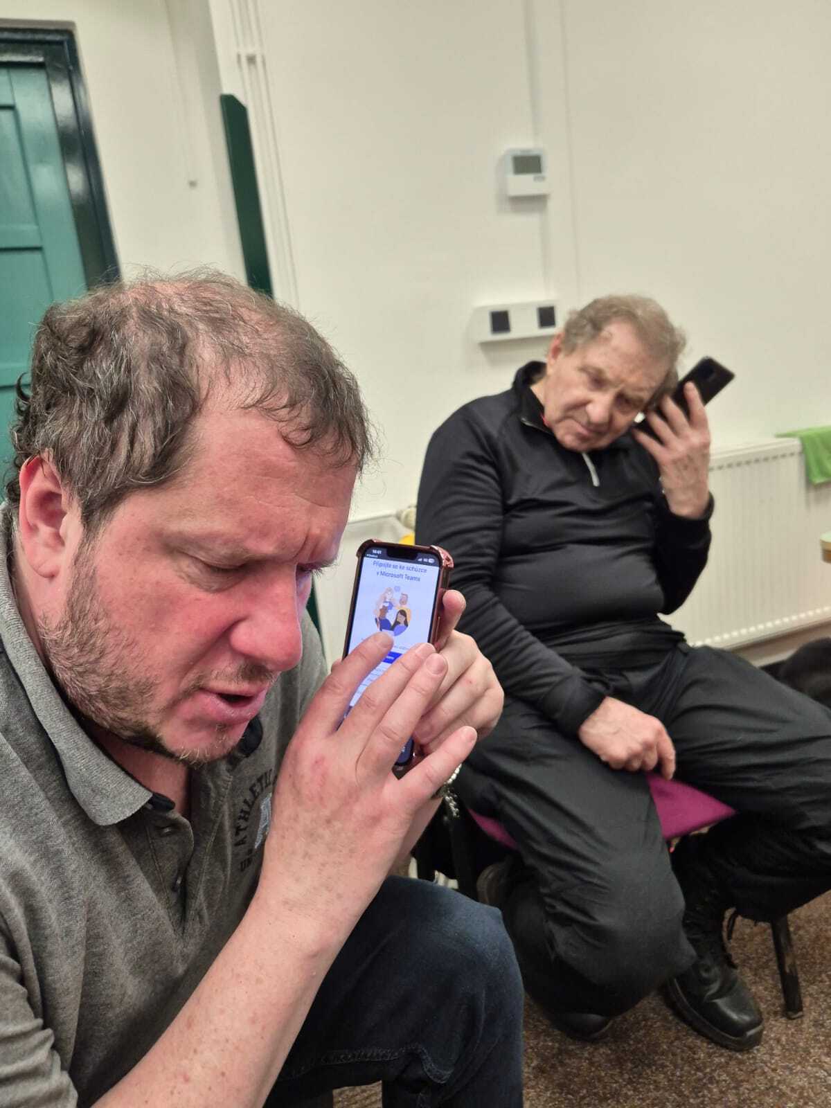 Pak následovala praktická část – připojení se na pokusnou schůzku. To se zdařilo tak napůl, protože někteří se k programu nemohli připojit vůbec. A tak se zkoušelo, hledala se řešení, a kdo nedořešil – třeba kvůli zapomenutému heslu, které má poznamenané doma v počítači, domluvil si individuální schůzku. A protože jak Petra Schejbalová, tak Michal Jelínek jsou zkušení a hlavně ochotní lektoři, domlouvali jsme si s nimi i možnost individuální pomoci s dalšími počítačovými a mobilními záludnostmi..