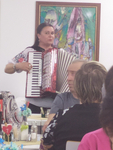 paní harmonikářka a my si s ní zazpívali. Hodinová směs moravských písní se moc