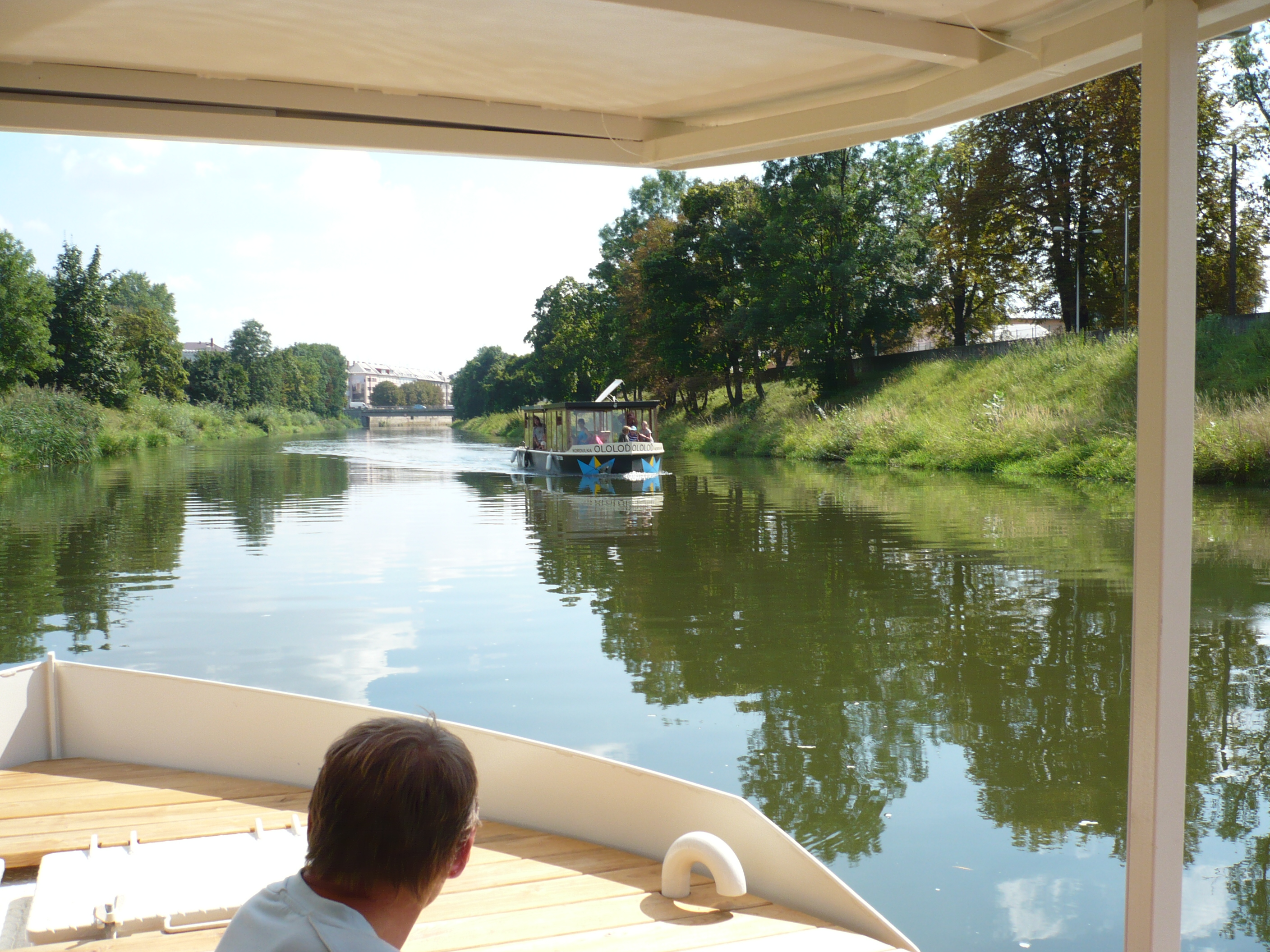 Celá vyjížďka trvala asi hodinu. Pan kapitán a zároveň provozovatel těchto lodí, pan Šimon Pelikán, i jeho mladý kolega na druhé lodi, nám zaníceně povyprávěli o architektuře a památkách a také raritách řeky Moravy. Třeba že je zde dostatečně čistá voda, že v ní žijí pstruzi a jiné druhy ryb, že zde mají pítko olomoučtí holubi. Také nám ukázali místo, kde žije jediný olomoucký vodník Emil.