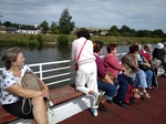 Cesta autobusem a vlakem nás dovedla do Spytihněvi, kde jsme se nalodili na 17 m dlouhou a 4 m širokou loď Morava, která nás po necelé hodině plavby po řece Moravě a Baťovým kanálem dopravila do Napajedel.