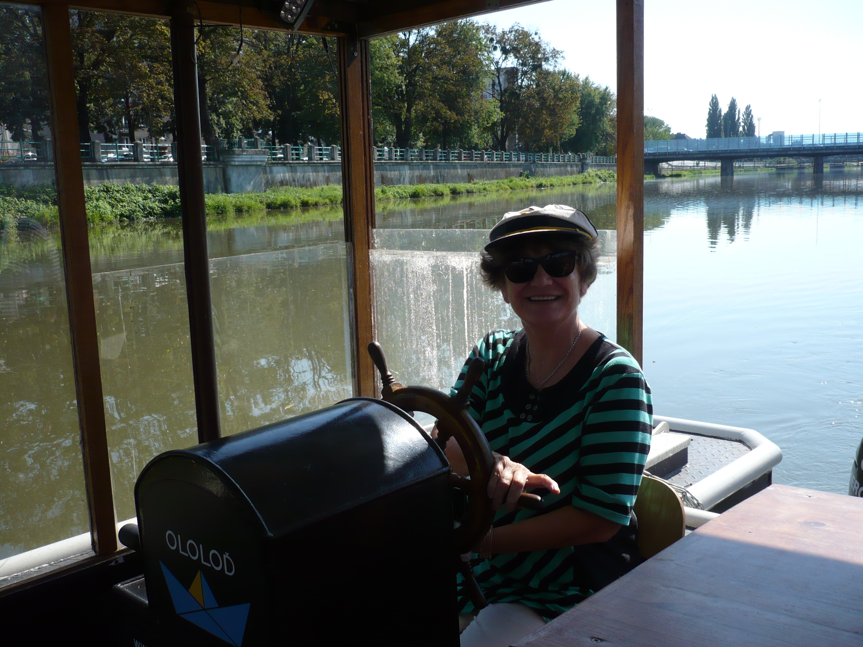 Marta: „Líbila se mi už kdysi plavba Ololodí po Moravě. A plavba po Bečvě Přerovem, to byl také nevšední zážitek. Vůbec to byl moc příjemný den mezi příjemnými lidmi. Zaujalo mě vyprávění kapitána lodi o bráně, která je umístěna v kamenném břehu Bečvy. Sem v minulosti najížděly koňské povozy. Přes bránu se v zimě na povozy nakládaly kusy ledu a odvážely se do přerovského pivovaru, sloužily pak k chlazení. V létě se zase tudy vynášelo do povozů splavené dřevo z Beskyd a dále se prodávalo tehdejším spotřebitelům. No a to, že jsem měla možnost zkusit si řídit celou loď a na hlavě mít kapitánskou čepici, to byla třešnička na dortu."