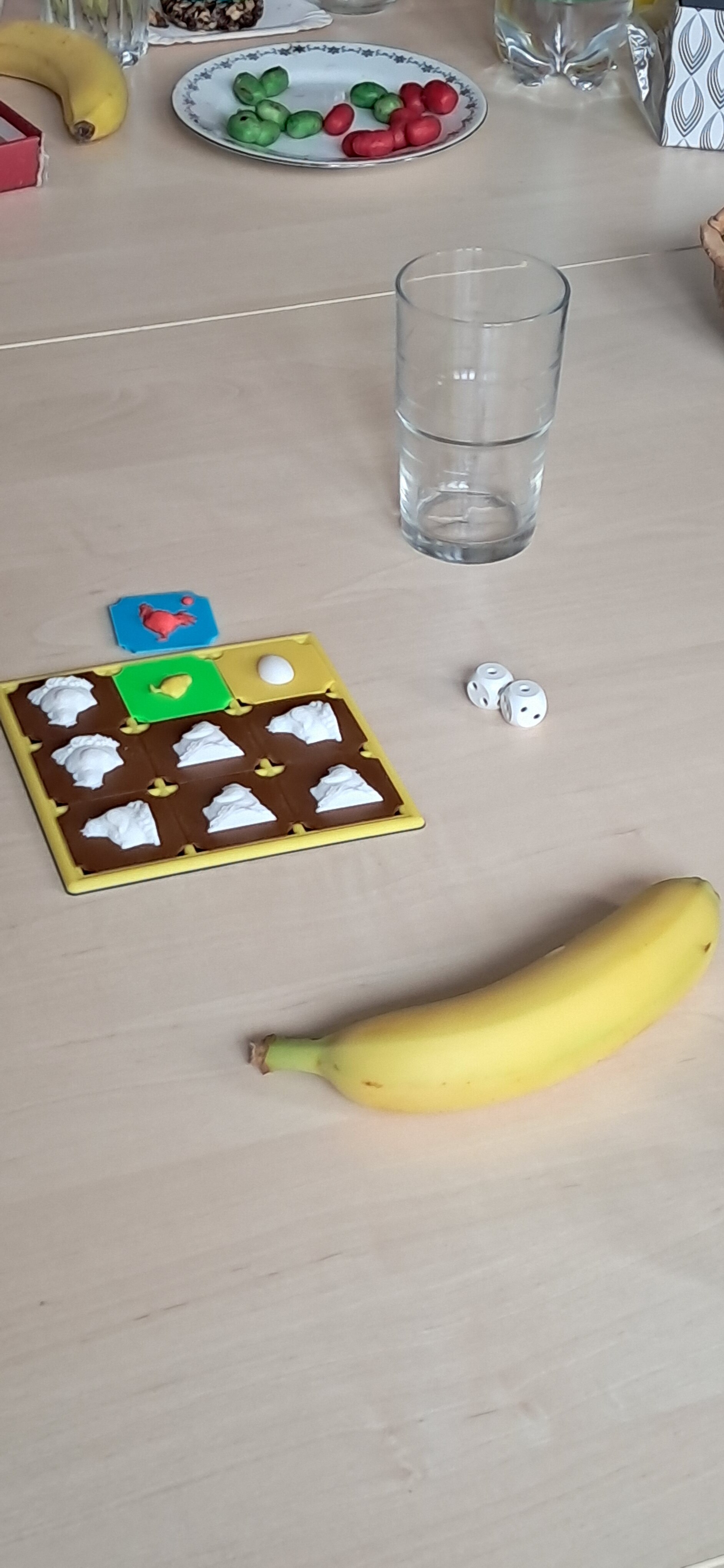 Nejenže nebyla práce s přípravou na Velikonoce, protože tu už jsme dělali minule, ale našli se někteří z nás, kteří hru vůbec neuměli. Začátky vypadaly trochu zmateně, ale následně propadla celá skupina herní vášni a odpoledne končilo i poměrně pozdě. Každý totiž potřeboval svůj kurník zaplnit slepičkami, zmocnit se kohouta ochránce a bát se kuny a epidemie, které dokážou kurník slušně zdecimovat.