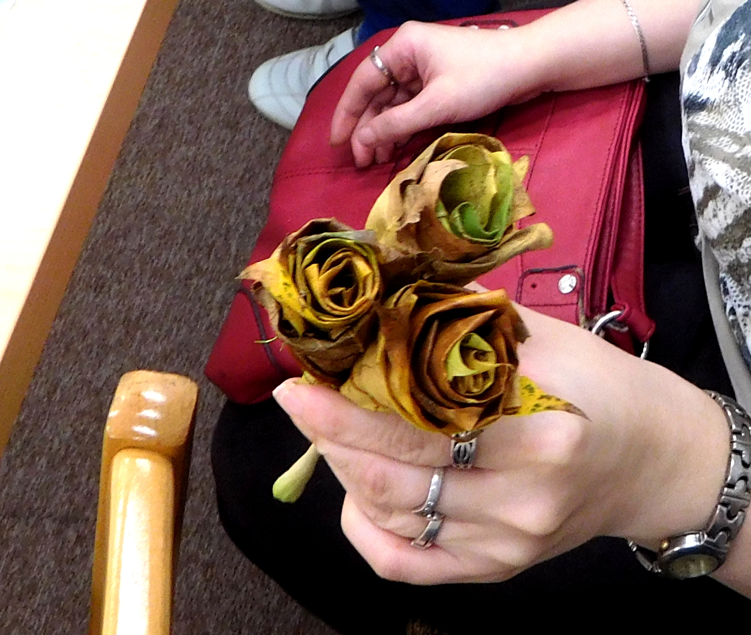 Využili jsme chvíle, než nám robusní vysavač vcuckl barevnou krásu javorových listů, využili jsme šimrající sluníčko na malou procházku a pod střechu jsme přinesli plnou náruč barevného podzimu. Tu jsme proměnili v náruč růží.