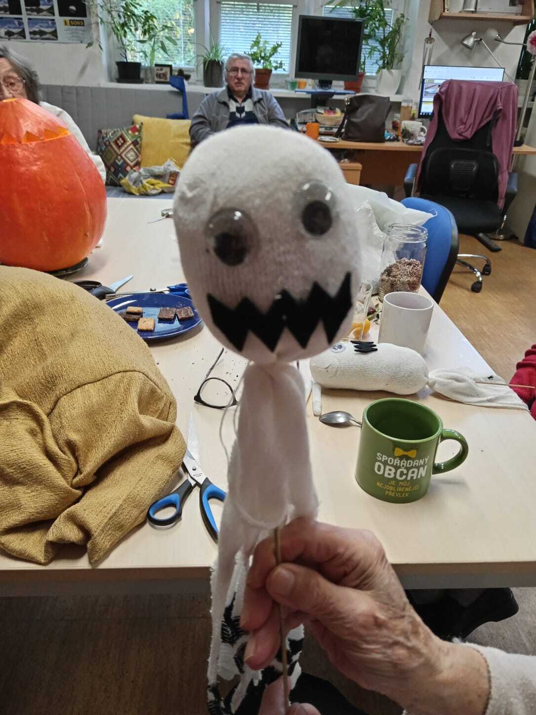 Letos se k nám zatoulala jedna obří, kterou jsme patřičně zpracovali. A když už dušičky, přidali jsme ještě několik duchů.