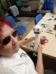 čistou bílou ponožku, vatovou výplň, bylinky (my měli levanduli), provázek a špejli. To všechno logicky zkombinujete, dozdobíte očima, které můžete buď namalovat fixou, nebo nalepit kupované. Sehnali jsme je v jednom z obchodů, kde mají úplně všechno, takže otázka: „Prosím vás, máte oči a čumáky,“ je vůbec nepřekvapila.