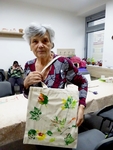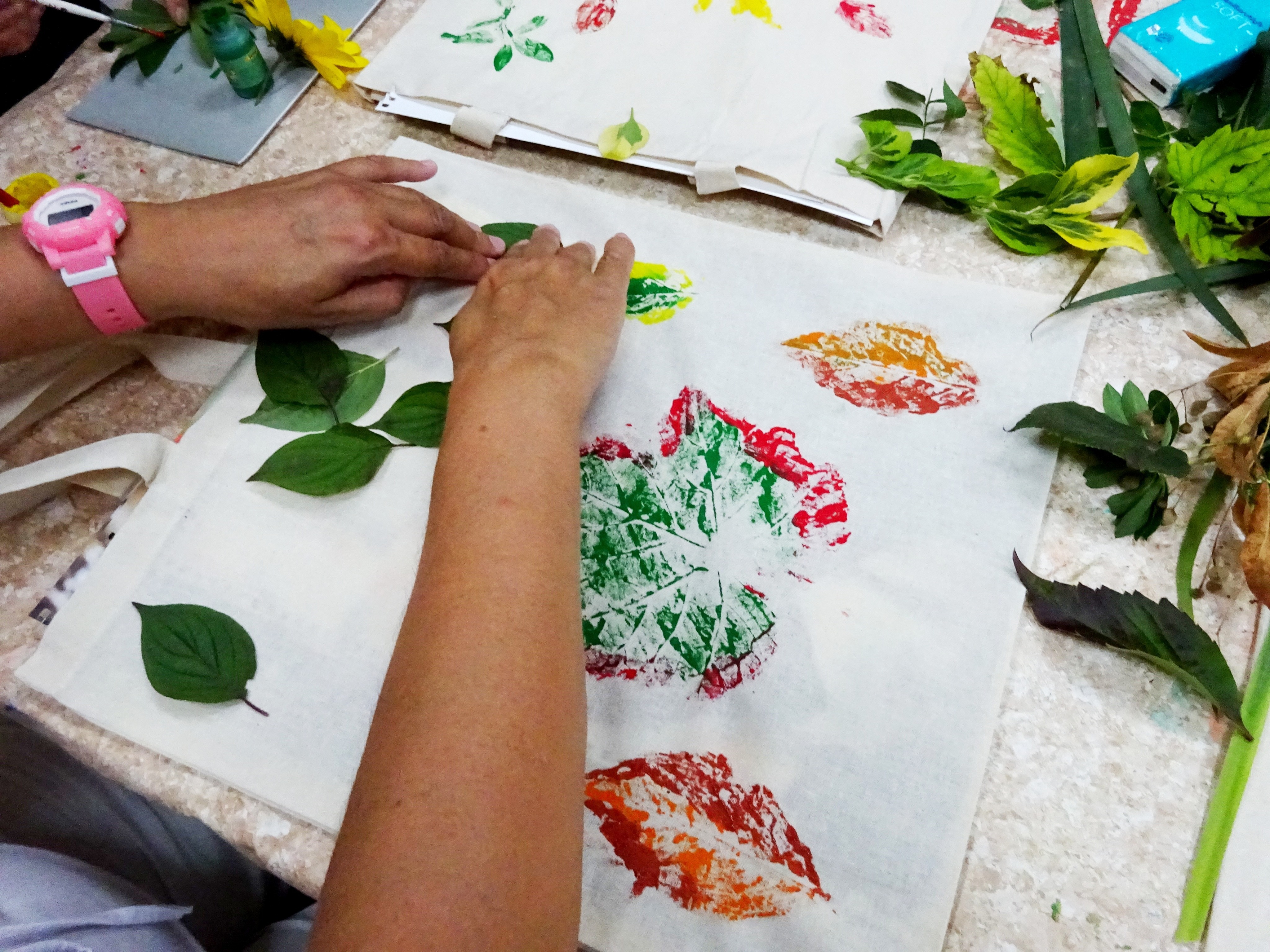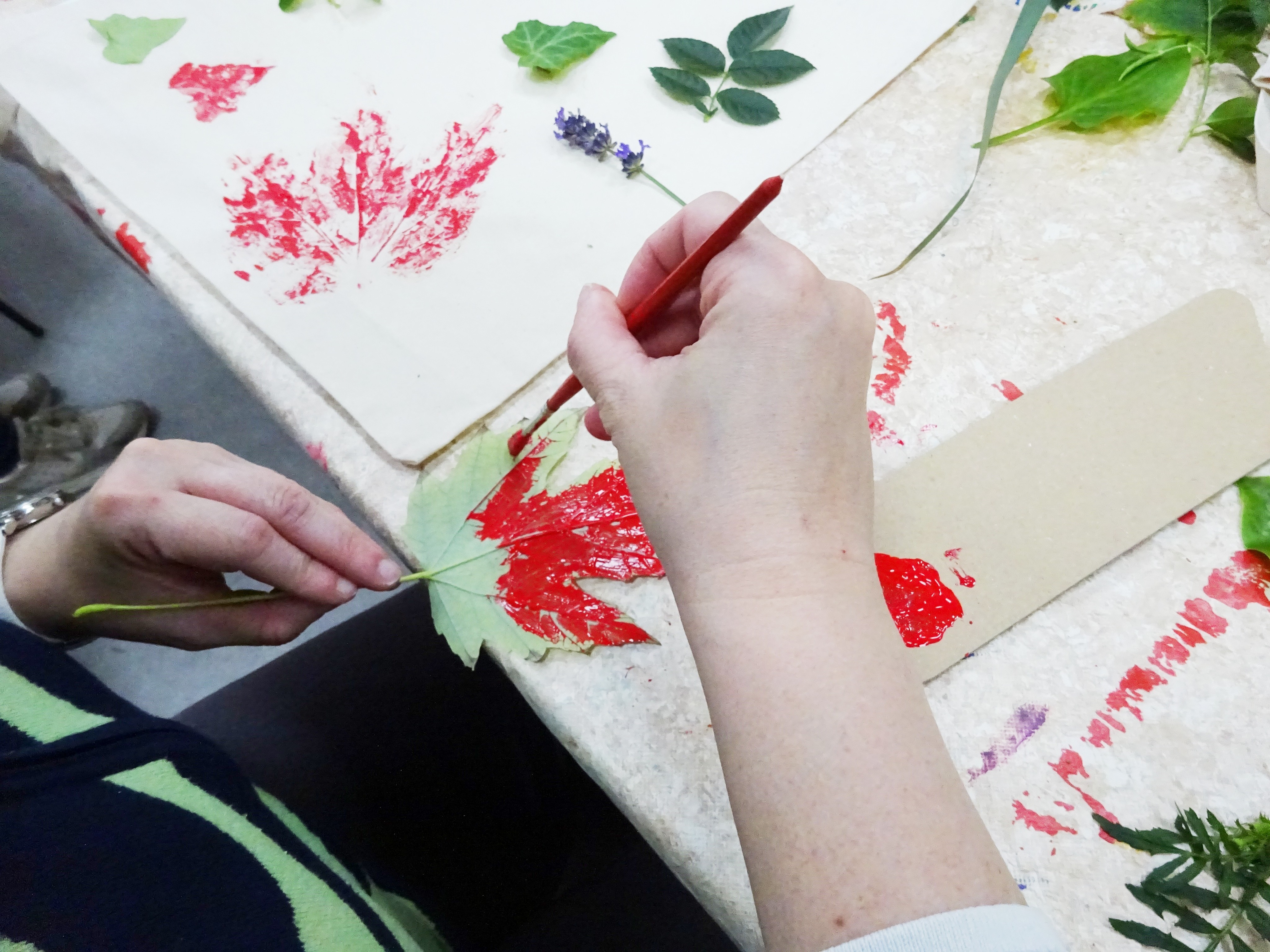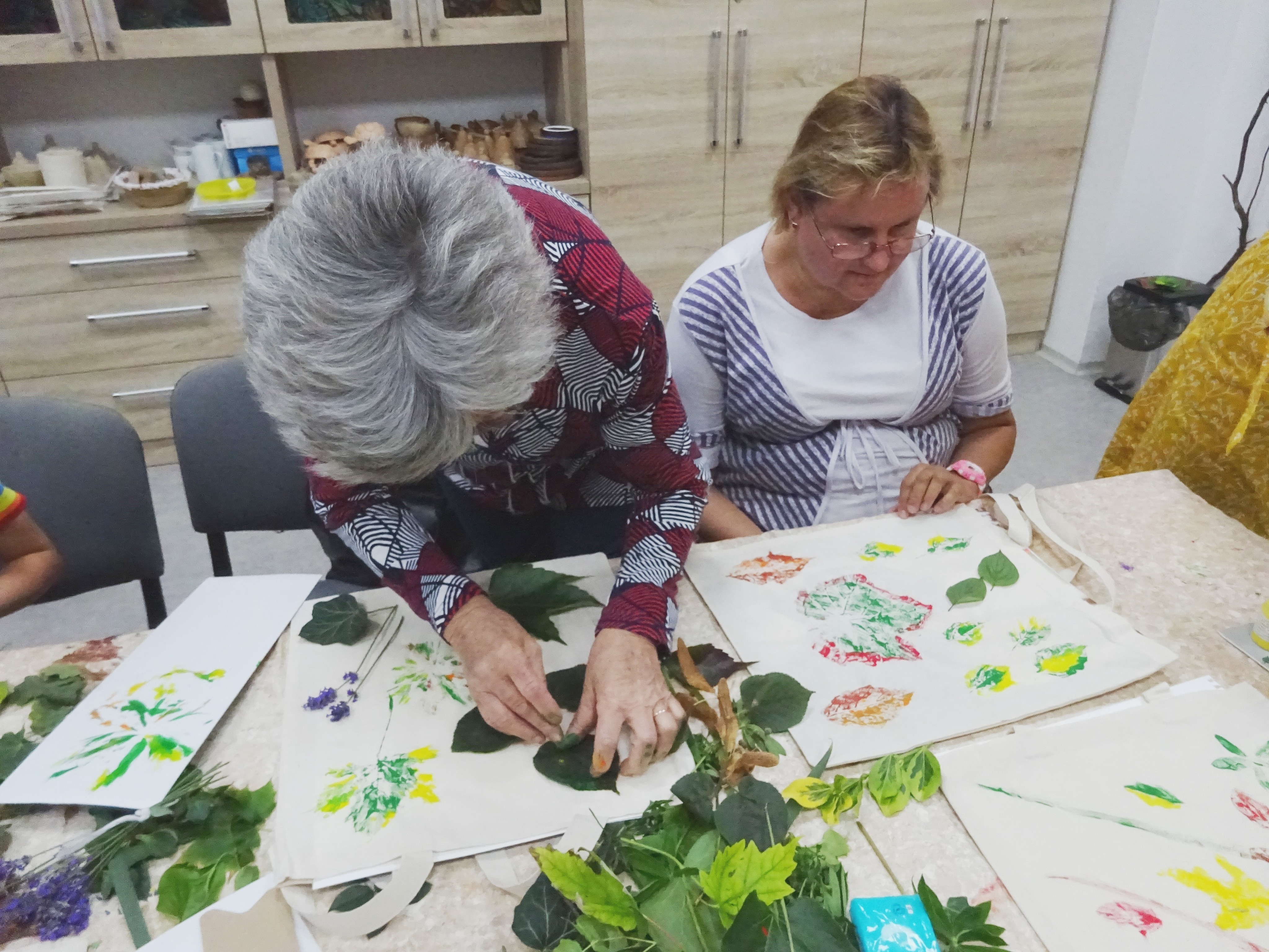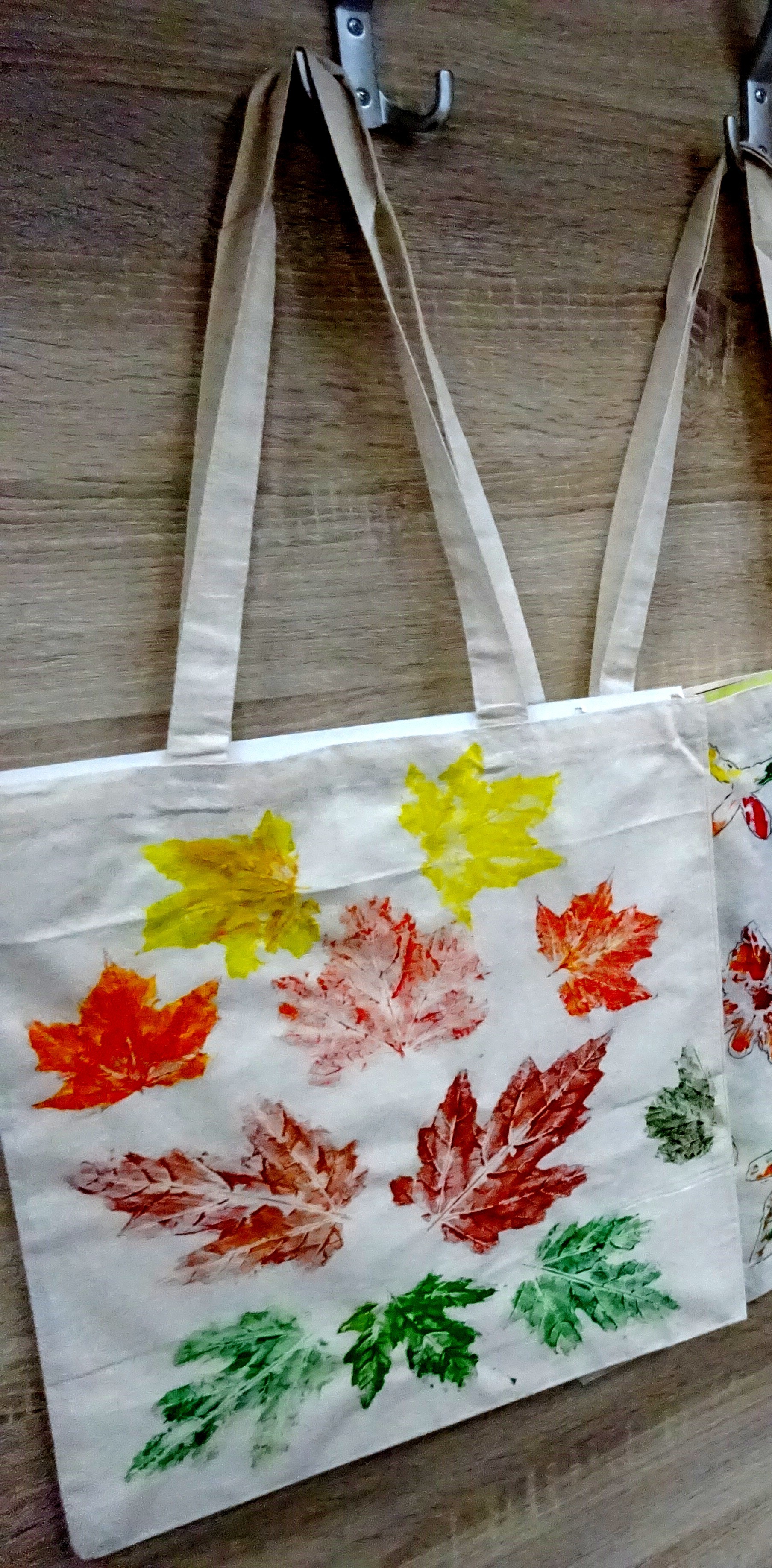 Všichni zvládli list natřít zvolenout barvou a na plátno jej obtisknout. Vidící lehce pomohli s kompozicí oku ladící, ale každému se nechala popustit uzda fantazie k výběru tvaru listu a kombinaci barev. Plátěné tašky vypadaly úžasně, pokud si někdo troufl, ještě si je dokreslil, či obtáhl konturou, každý dle svých zrakových možností a úžasný módní doplněk byl na světě!