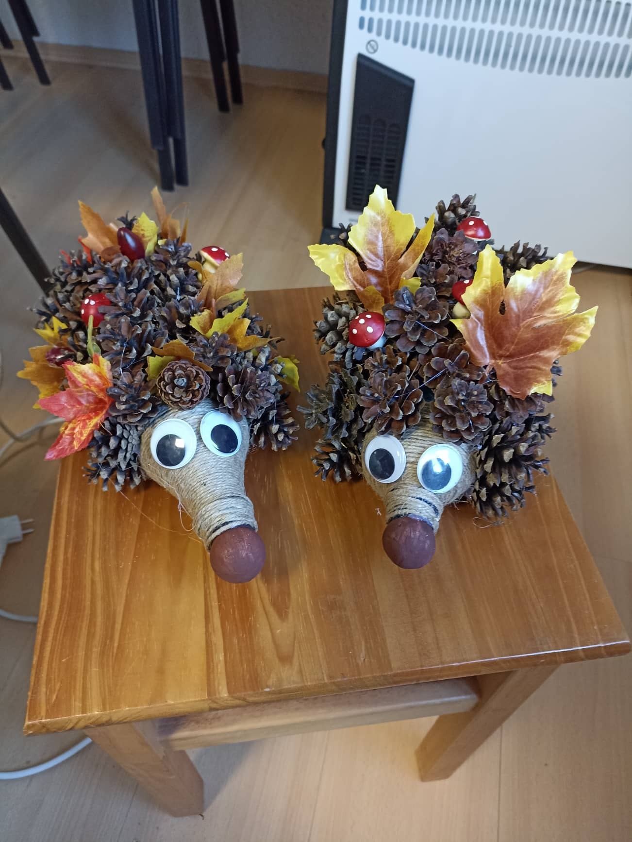 Tak jsme si je vyrobili. Ježečky, které mužeme mít doma, neuteče, nedupe a nemá blešky.......