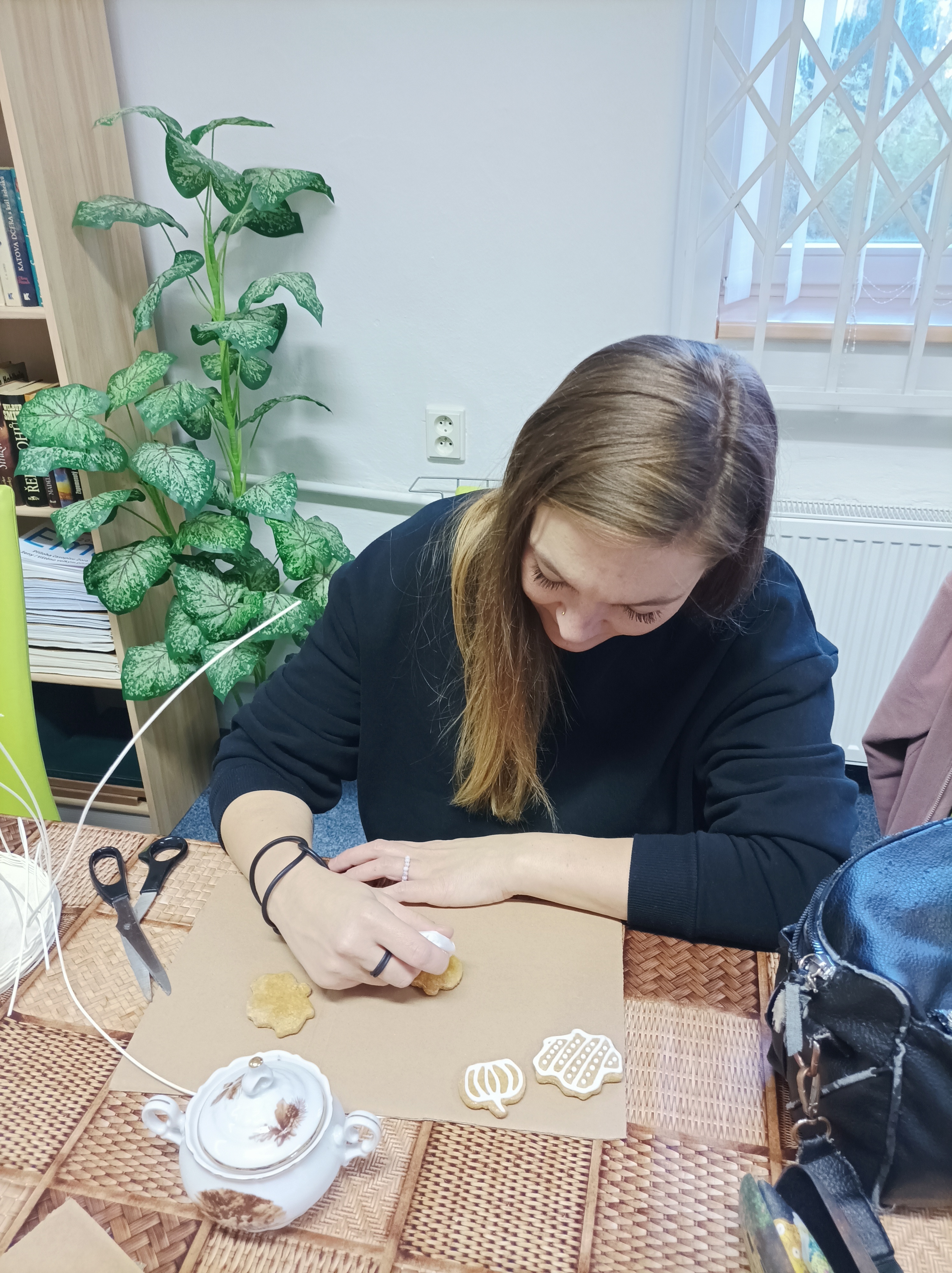 Naše dobrá víla Anetka, pro nás upekla voňavé a vynikající perníčky. Barevné polevy, různé tvary listů, dýní či jablíček a spousta fantazie – to vše zaplnilo stoly i srdce účastníků. Každý perníček byl originál a dohromady vytvořily nádhernou, veselou mozaiku podzimních barev. Nešlo jen o výsledek, ale hlavně o radost ze společně stráveného odpoledne, plného smíchu a vůně skořice.