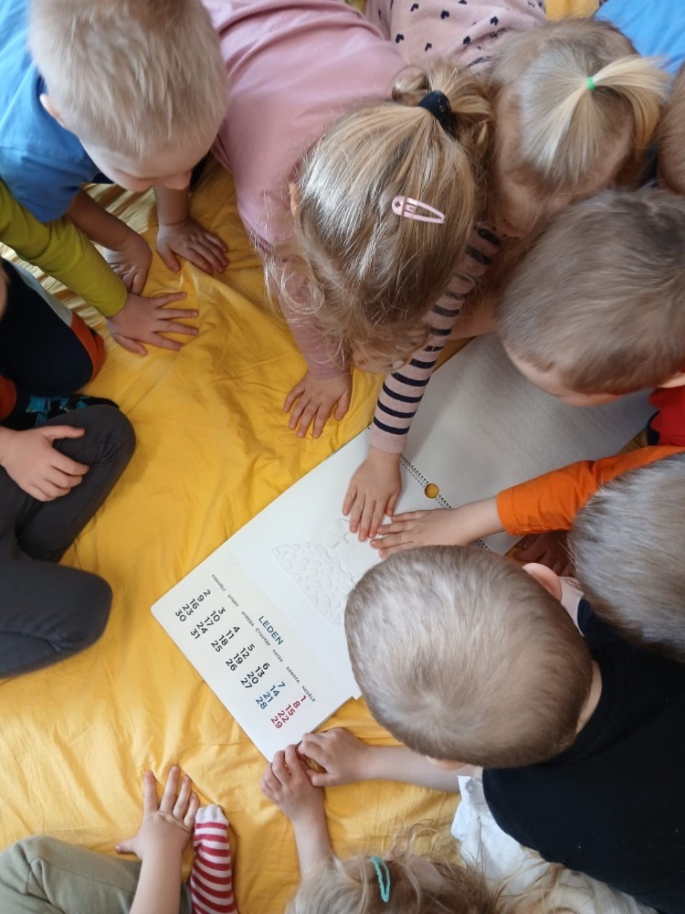 Setkání bylo nejen o čtení, ale také o poznávání. Povídali jsme si s dětmi o tom, jak se nevidomí lidé pohybují venku, co všechno jim pomáhá v běžném životě, jak poznají, co mají na talíři, nebo jak náročné je naučit se číst a psát bodovým písmem. Děti byly velmi zvídavé, kladly zajímavé otázky a s velkým nadšením objevovaly svět, který jim byl dosud neznámý.