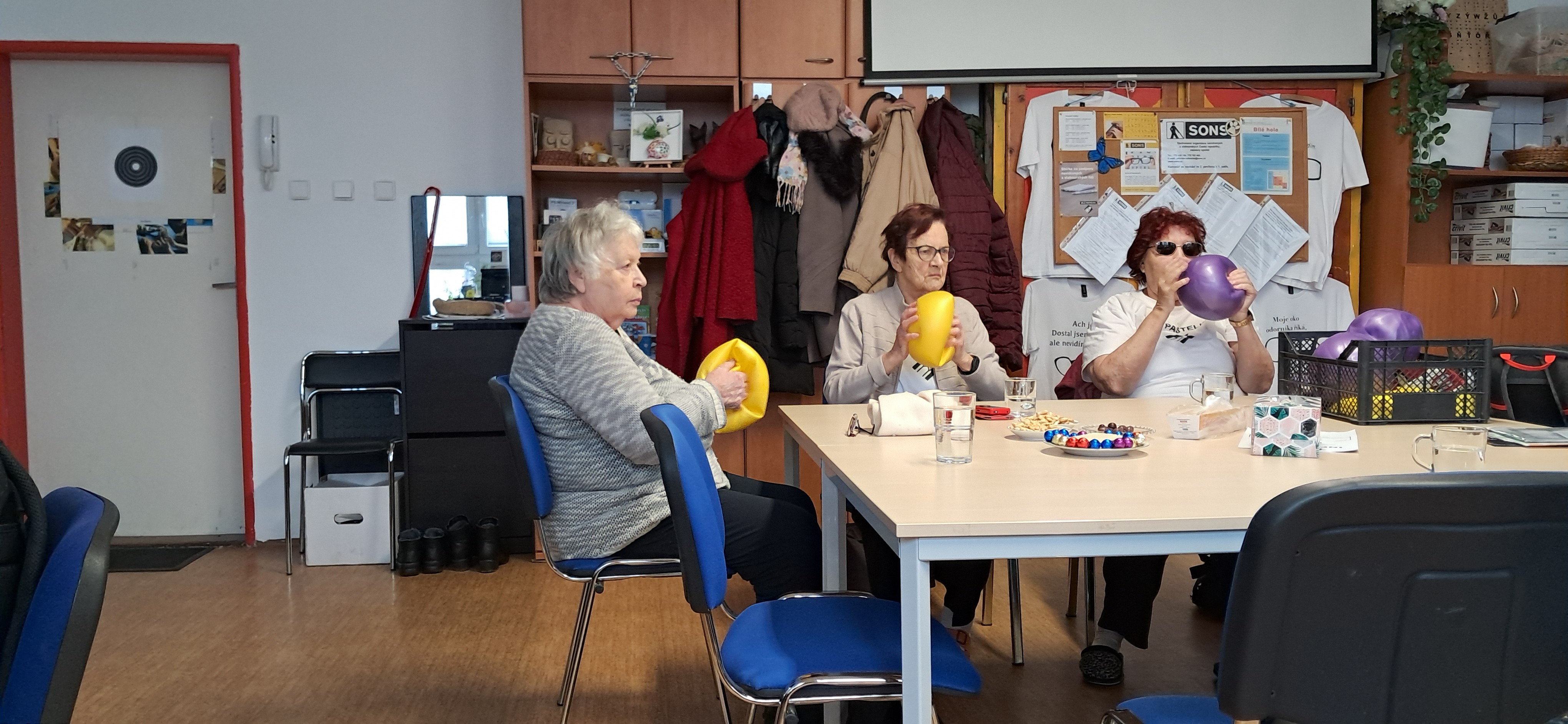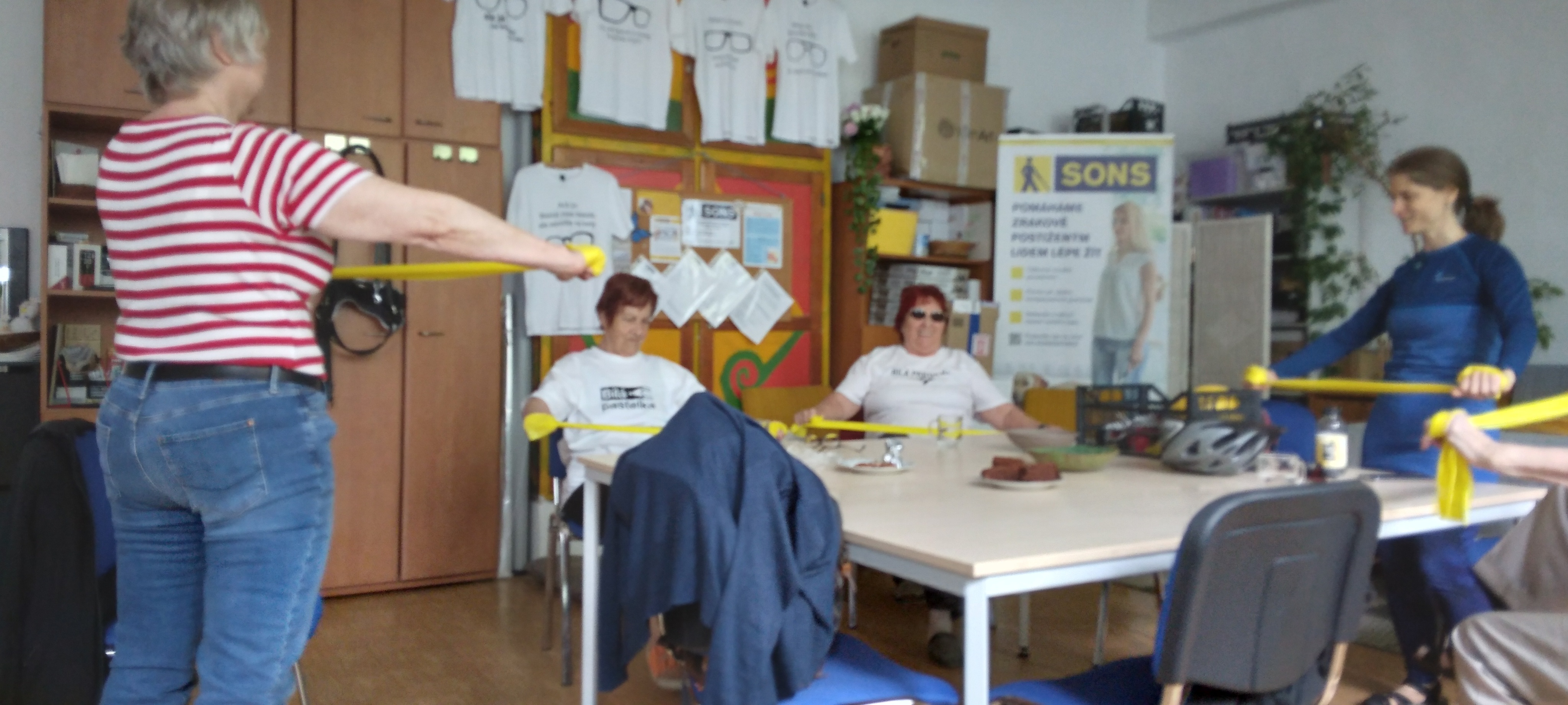 Už dávno jsme si zvykli na pravidelný pohyb. Scházíme se každý týden vždy v úterý na společné cvičení, po němž někdy něco tvoříme, nebo si jen povídáme, čteme si, vstřebáváme informace a oživujeme dovednosti a plánujeme, co dál.