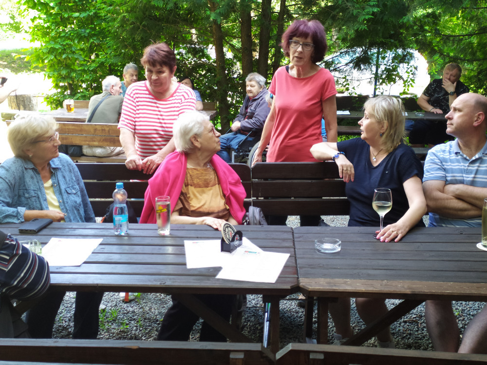 Členové naší odbočky Blansko se tradičně sešli na předprázdninovém posezení. Tentokrát jsme zvolili místo pod hrází Boskovické přehrady, kde se u potoka nachází „ OBČERSTVENÍ U VYDRY“. Účast na této akci byla veliká. Dostavili se i členové, kteří uvítali bezbariérové prostředí a krásy téměř letní přírody, Většina z nás si objednala vyhlášenou makrelu, klobásku či grilovaný hermelín. Na uhašení žízně jsme volili pivo nebo moravské vínko. Někteří z nás také navštívili i přilehlé Arboretum Šmelcovna a byli nadšeni z omamných vůní květin a keřů. Čas příjemně plynul a ke konci posezení jsme si i společně zazpívali. Nasyceni novými informacemi, plni příjemných pocitů z přátelských rozhovorů a setkání jsme se dohodli, že podobnou akci, byť třeba na jiném místě za rok zopakujeme.
