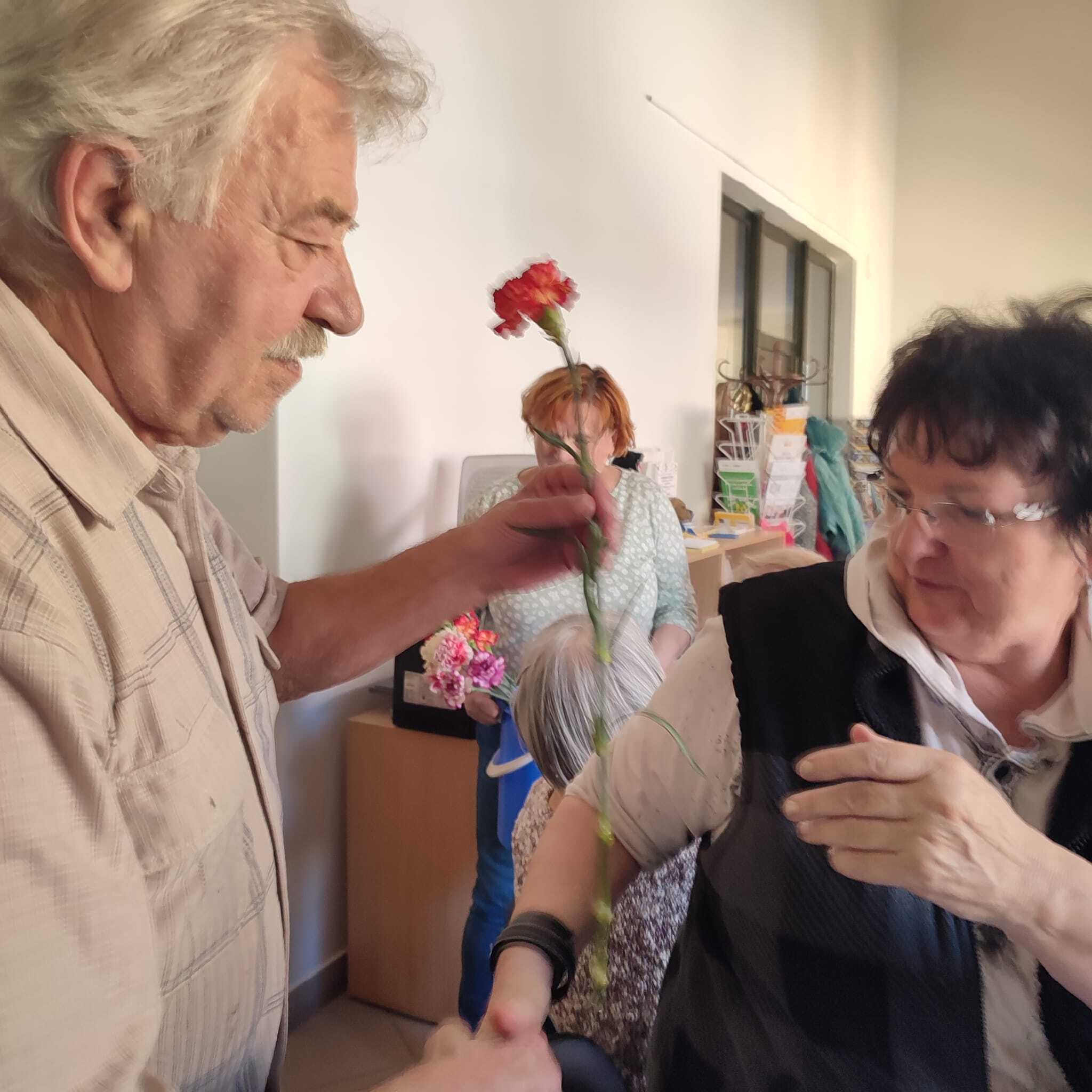 Začátek akce byl naplánován na 14:00 hod. Na úvod jsme byli přivítáni Marií Miziovou vedoucí našeho kontaktního centra. Poté všechny zde přítomné ženy obdržely ke svému svátku živý karafiát. Účastníkům akce byla dle jejich přání servírovaná káva nebo čaj, skvělý zákusek a obložený chlebíček. Ještě před návštěvou našeho vzácného hosta, který nám později povyprávěl o své plavbě kolem světa, nám paní Karla Koukalová přečetla několik vtipných fejetonů, které ve své knize sepsal pan Marek Eben.