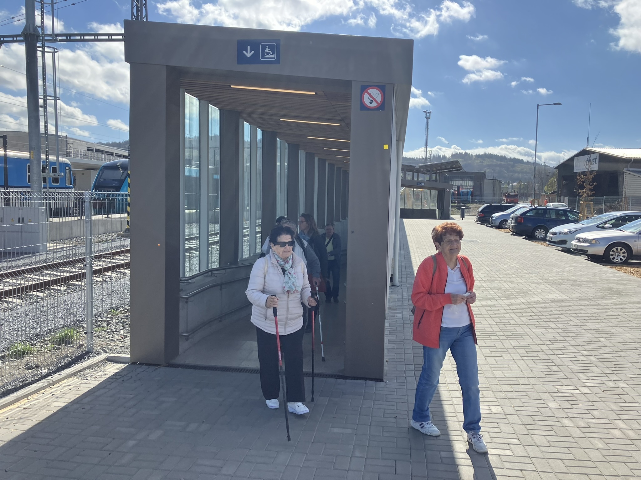 Včera jsme se s uživateli služby vydali na prohlídku nových zanádražních prostor ve Vsetíně. Prošli jsme nově vybudovaným podchodem, kde byly popisovány barevné malby na stěnách a upozornili jsme je také na hlasové majáčky. Poté si uživatelé vyslechli informace o otevření zanádraží, nových komunikacích, parkovacích plochách a financování. Uživatelům jsme popisovali nové prostranství bytových domů, ukázali jim druhý nově vybudovaný podchod vedoucí do města a poté došli k zimnímu stadionu Lapač. Zde se uživatelé rozdělili a dle zájmu šli na turistickou procházku na kopec Bečevná do Rokytnice v celkové délce trasy cca 6,5 km. Po cestě se mohli hapticky seznámit s vyřezávanými sochami a nechali si od průvodců popisovat výhledy na jarní přírodu. Tato aktivita byla umocněna krásným počasím.