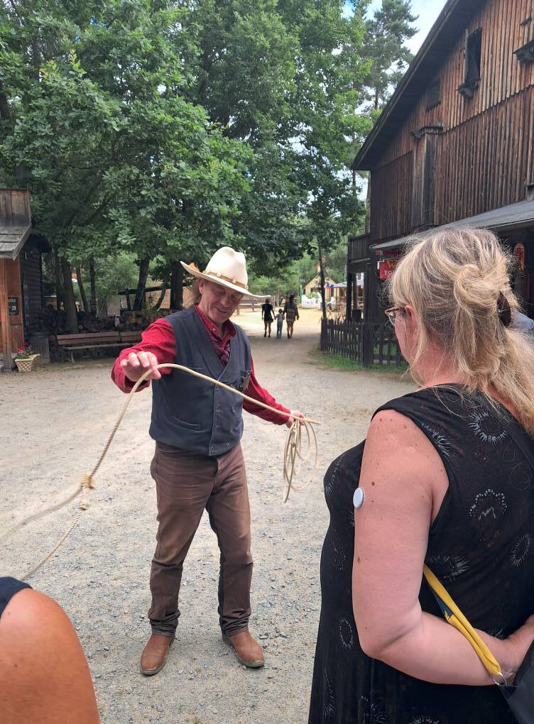 Dne 23.7. 2025 jsme v ranních hodinách vyrazili na místa České republiky námi ještě nepoznané. Naší první zastávkou bylo Westernové městečko v Boskovicích, kde nás mile přivítal kovboj, který byl zakladatelem a majitelem městečka. Velkým přínosem pro nás byl jeho skvělý monolog, kdy nám popisoval prostředí, kde jsme se nacházeli, programy, které jsou pro návštěvníky připraveny a celou historii vzniku této lokality. Měli jsme tedy možnost strávit skoro 2 hodiny v autentickém prostředí westernového městečka, kde ožívají legendy o indiánech a kovbojích. Nahlédli jsme do saloonů a vyzkoušeli si rýžování zlata. Pokud nevíte kam zavítat, tak sem se určitě vydejte!