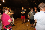 Během menší procházky jsme obdivovali také zdejší okolí. Vzrostlé sazeničky vinné révy budou za pár let na náměstí vytvářet pěkné zátiší. Vzhledově náměstí před Vinařskou stodolou připomíná náměstí novodobých, moderních evropských měst. Zdobí ho jak fontánky stříkající z dlažebních kostek, tak samotné kostky tvořící kruhové obrazce ve světlých a tmavých tónech šedé barvy. Ve tmě fontánky dokonce i svítí a dotvářejí kouzelnou atmosféru tohoto místa. Při naší návštěvě se před vinařstvím budovalo také okrasné jezírko s rybkami a kaskádovým vodopádem. Vše je spolu s krásnými rostlinami velmi citlivě zasazeno do okolí a vytváří tak soulad s krajinou Lednicko-valtického areálu. Naše ručky „šmátralky“ také nemohly opominou velký, starobylý klíč našeho průvodce. Došli jsme až k budově dřívější podnikové prodejny, kde jsme si vyslechli na úvod několik informací o této rodinné firmě s moravskými kořeny a tradicí. Tatínek Antonín Štastný má v péči vinohrad a pozemky, syn Marek je generální ředitel, který se odpovídá za kvalitu vín a jeho bratr David má na starosti marketing. Na stěnách se to jen hemžilo různými druhy získaných ocenění za výborná vína. Po té jsme prošli prostory skladu a následně sestoupili až k samotnému sklepu, kde přišel na řadu již zmíněný klíč. Ten nám otevřel bránu přímo do „vinařského nebe“ - křížového sklepa, který je jedním z největších sklepů v České republice. Byl postaven v roce 1640 rodem Lichteinsteinů. Tak jako vše tady i vybudování je docela ojedinělé. Sklep nebyl hlouben obvyklým způsobem ale prostě se vybudoval a následně se jen zahrnul patřičným množstvím půdy. Jak jednoduché a přitom geniální. To mělo i vliv na to, že sklep byl za celá staletí své existence vytopen jen dvakrát. O tom nám také pojednávají dvě pamětní desky umístěné před vchodem do samotného sklepa. Deska na pravé straně o povodni z roku 1747 je psaná dokonce starobylým Swabachem. Je na ní ryska s ukazatelem ruky a připomíná nám, kam až voda v té době dosáhla. Deska na levé straně je reliéfní a znázorňuje plavající soudky vína ze dne 12. 7. 1975.