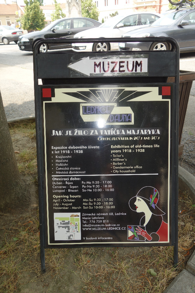 Ve středu jsme zavítali do muzea Lednice dávná. Expozice v něm nás přenesla do období první republiky. Prostředí muzea má velmi autentický charakter. Nedaleko pokladny je umístěn vtipně nápis: Že žebrota je na tomto místě povolena jen v pátek! V prostorách muzea jsme nakoukli do tehdejšího plně vybaveného holičství, kde starali nejen o úpravu pánského zevnějšku ale také o účesy zdejších dam. Těm se za pomocí horké kulmy ondulovaly jejich hlavinky podle vzoru tehdejší módy aby vypadaly jako herečky z filmového plátna. Z desatera dámské elegance, jsme se poučili např. o tom, že se ženy mají při výběru svého outfitu radit s mužem. Muži jsou prý nejvyšší instancí v otázkách dámské módy. I když módě příliš nerozumí, lichotí mu, že ženě záleží na jeho úsudku. Radí neradit se s přítelkyněmi o tom, co si ženy vyhlédly. Netřeba jistě dodávat proč. Nemají se pěstovat ani módní výstřelky. Není to totiž praktické, přehnaná moderna má vždycky jepičí život a co potom s takovou toaletou! A za druhé, nápadnost není pro skutečnou dámu! Nakoukli jsme také do četnické stanice, kavárny, modiství i třeba biografu. Z plakátů jsme se dozvěděli jsme, že v té době byla hrána nejhranější česká veselohra s Hugo Haasem, Ať žije neboštík. Populární byly také filmy U pokladny stál s Vlastou Burianem, či Vandiny Trampoty s Věrou Ferbasovou. Mnoho z nás si krásně zavzpomínalo u vystaveného dobového kočárku. Průvodkyní nám byla sama majitelka paní Marie Létalová, která toto období přímo zbožňuje. Je vášnivou sběratelkou všemožných předmětů této doby. Za její asistence jsme si vyzkoušeli spoustu klobouků, kabelek, střevíčků, jemných rukaviček, kožešinový šál z polární lišky, čelenky, boa atd. bez kterých bych vzhled tehdejších dam, nebyl nikdy úplný a dokonalý. V muzeu je připravený také foto koutek s mnoha doplňky, ve kterém jsme se také pěkně vyřádili. To vše za tónů dobové hudby linoucí se z gramofonu, která nás ještě více vtáhla do období tatíčka Masaryka.