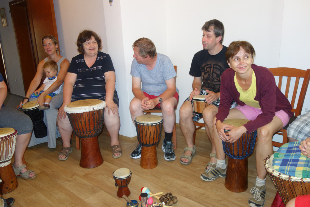 Poslední večer nám v penzionku zpříjemnila muzikoterapie, připravená paní Lucií Hodonskou. I když naše plány trošku hatil déšť. Přece jen jsme si zabubnovali na djembe, tak až se náš penzionek otřásal v základech. Zaposlouchali se do zvuků tajuplného australského domorodého nástroje didgeridoo, šamanského bubnu i kouzelných tibetských misek. Blahodárný vliv muzikoterapie na náš organismus jsme nakonec ještě podpořili příjemně osvěžujícím nočním koupáním při svitu měsíce. Jen bazénové schůdky si s námi ještě trochu zahrály „laškovanou“ aneb vylezu a zase zalezu...