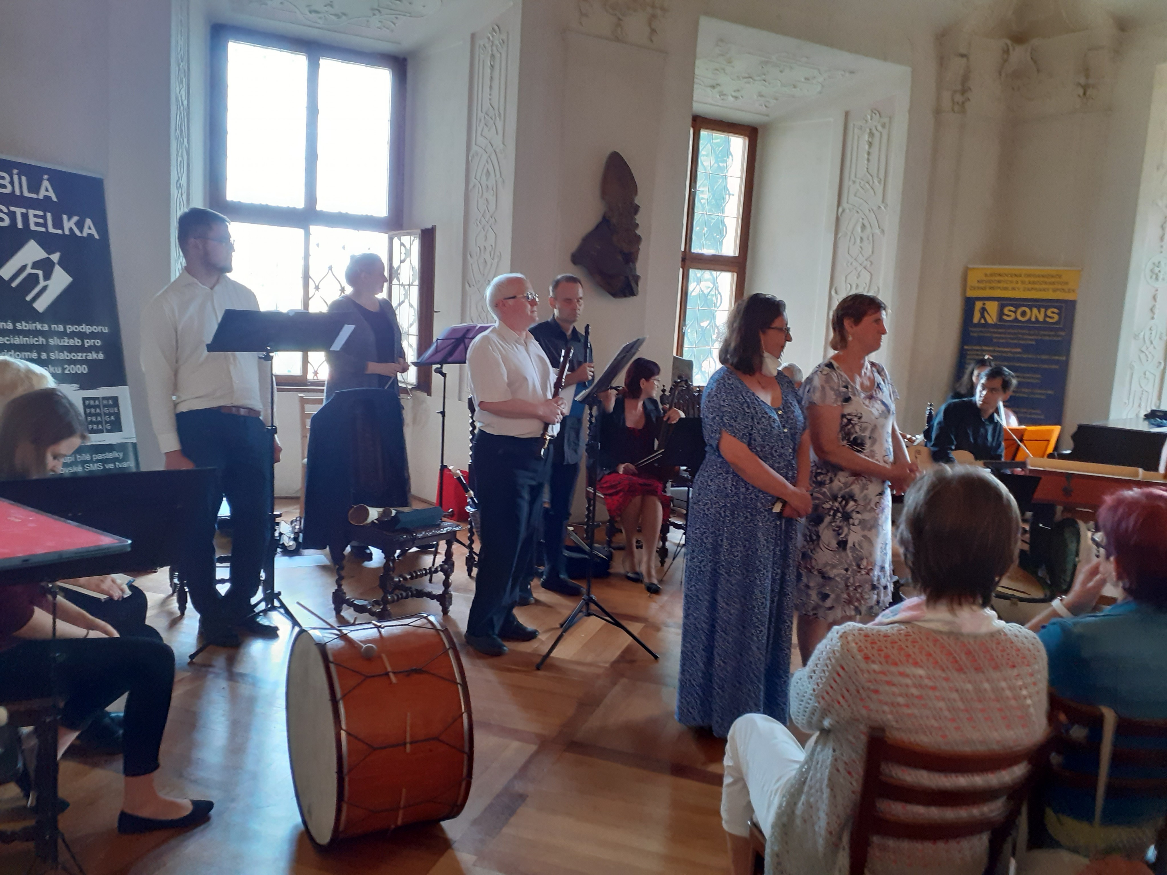 Od čtvrtka 24. 6. do pondělí 28. 6. se vydalo šest členů jesenické odbočky na poznávací pobyt v Sázavě, pořádaný 4 odbočkami SONS – Třinec, Nový Jíčín, Jeseník a Benešov. Celkově se nás sešlo téměř 50 účastníků. Bydleli jsme v krásném hotelu v městečku Sázava. Každý den jsme měli možnost účastnit se organizovaného večerního programu s názvem „večer s“. Prvním večerem nás svým úžasným zpěvem a mluveným slovem provedl nevidomý zpěvák Radek Žalud. Druhý večer patřil dalšímu nevidomému zpěvákovi a muzikantovi Honzovi Jarešovi. Připravil si hudební pásmo s písněmi Osvobozeneckého divadla J. Voskovce a J. Wericha. Třetí večer byl sportovně laděný, o sportech pro zrakově postižené nám povídal účastník paraolympiády v Atlantě v goalbalu pan Karel Novotný. Poslední večer patřil benešovským Dnům umění nevidomých na Moravě. Zúčastnili jsme se vernisáže fotografií Lubomíra Pavelčáka a koncertu Musica pro Sancta Cecilia v Sázavském klášteře. Během výletů jsme navštívili zámek Konopiště a přilehlou růžovou zahradu plnou rozkvetlých a nádherně vonících růží, město Kutná Hora s chrámem sv. Barbory a kostnicí v Sedlci, v městečku Sázava jsme navštívili Sázavský klášter s krásnou zahradou a tvořivou dílničku s programem gravírování skla. Povídání o tomto pobytu bylo tématem prvního středečního červencového klubu. Zpestřením bylo promítání fotek a sdílení zajímavých zážitků z cest.