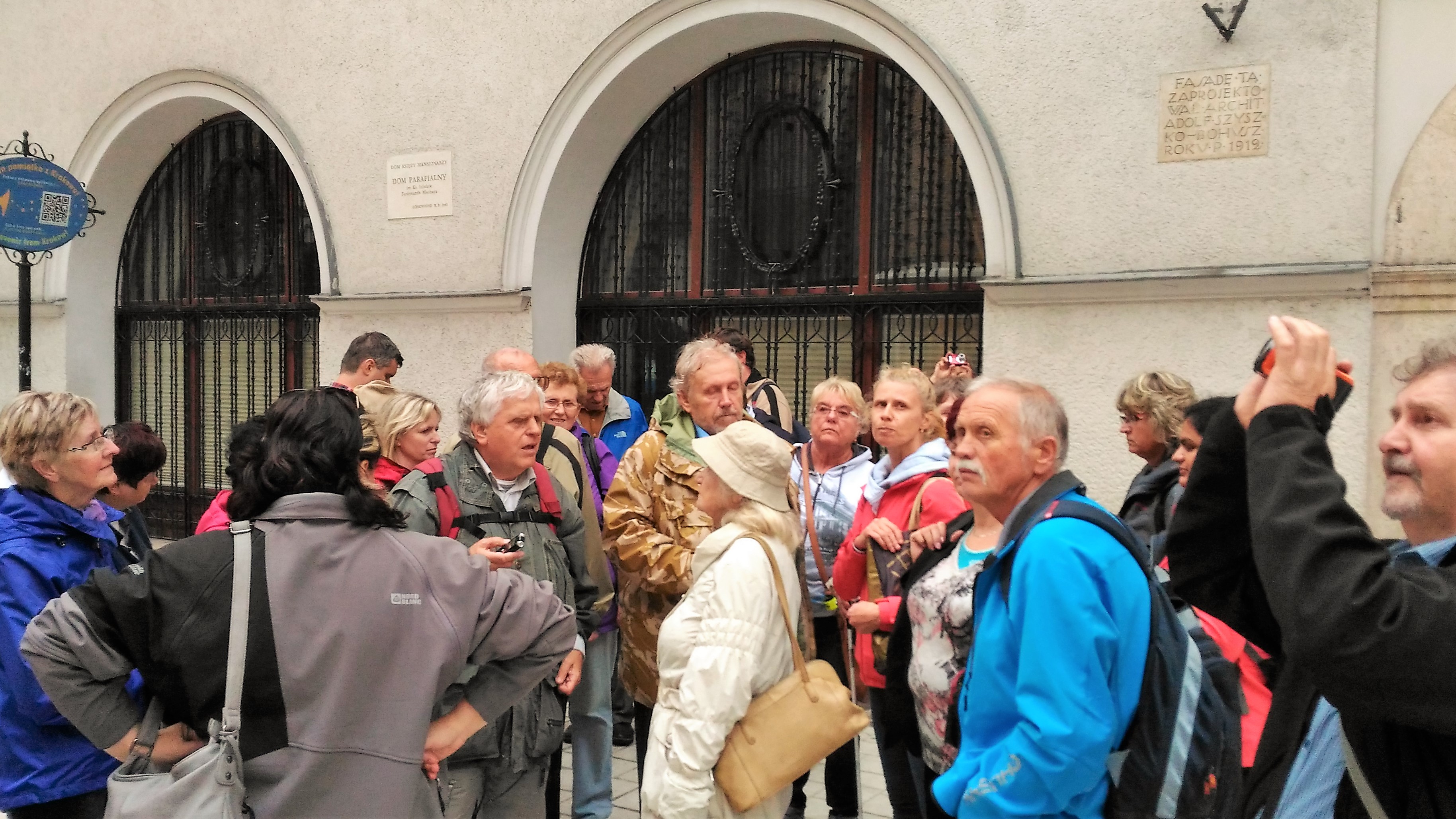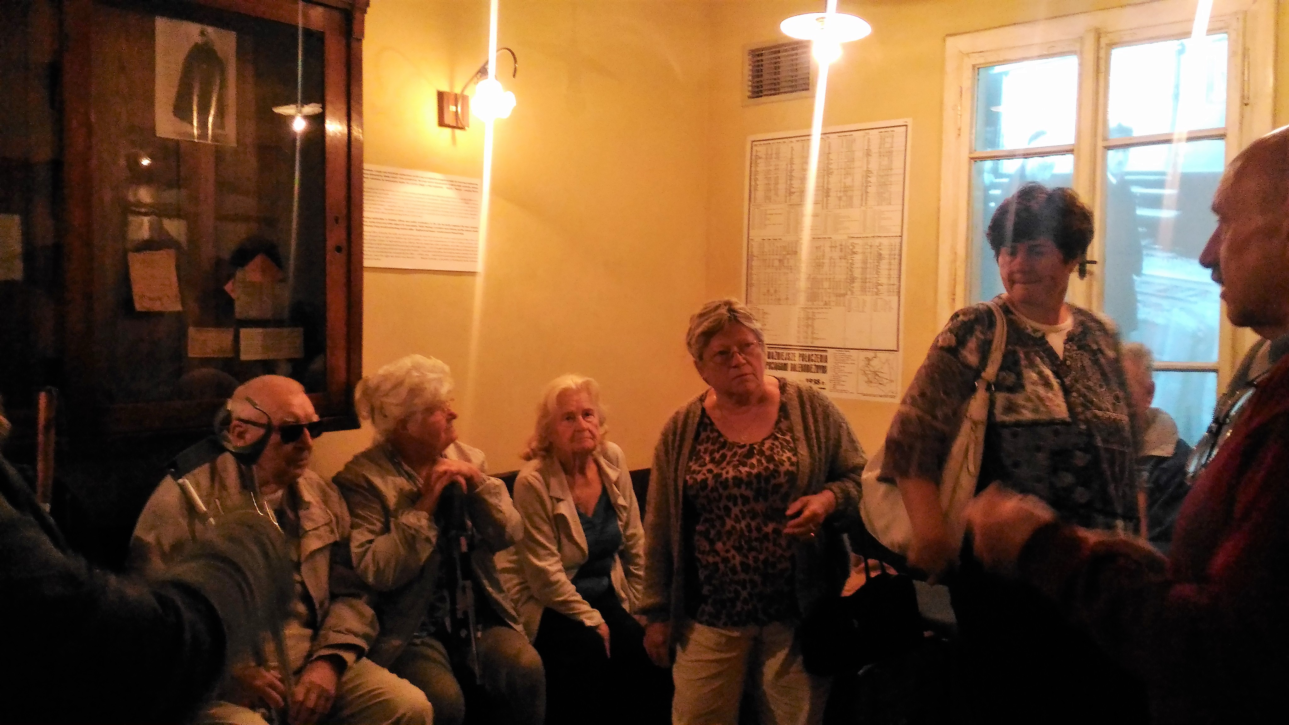 Po zhruba pětihodinové cestě autobusem (včetně zastávek) jsme se ubytovali ve studentském domě ATOL, kam nás přišla vyzvednout dobrovolnice ze svazu nevidomých – slečna Kasia, která nás navigovala do ústředí svazu nevidomých pro Malopolsko v centru Krakova. Zde jsme se seznámili s vedoucí pracoviště paní Mariolou Jażdżyk a s panem Ing. Janem Ortylem – prezesem (čili prezidentem) Polského Svazu Nevidomých pro Malopolskou oblast. Pan Ortyl je zrakově postižený a působí ve své funkci jako dobrovolník 15. rokem, jinak je prorektorem a přednášejícím na polytechnické univerzitě. Po seznámení a krátkém pohoštění jsme vyslechli od pana Ortyly povídání o polské organizaci, mohli jsme se také ptát na to, co nás zajímá ohledně života nevidomých a slabozrakých v Polsku, a také si prohlédnout některé pomůcky. Darem každý z nás obdržel Průvodce po Krakově pro handicapované buď v polštině anebo v angličtině. Poté jsme se již vydali na společnou večeři v útulné restauraci, kterou pro nás zařídila paní Mariola.