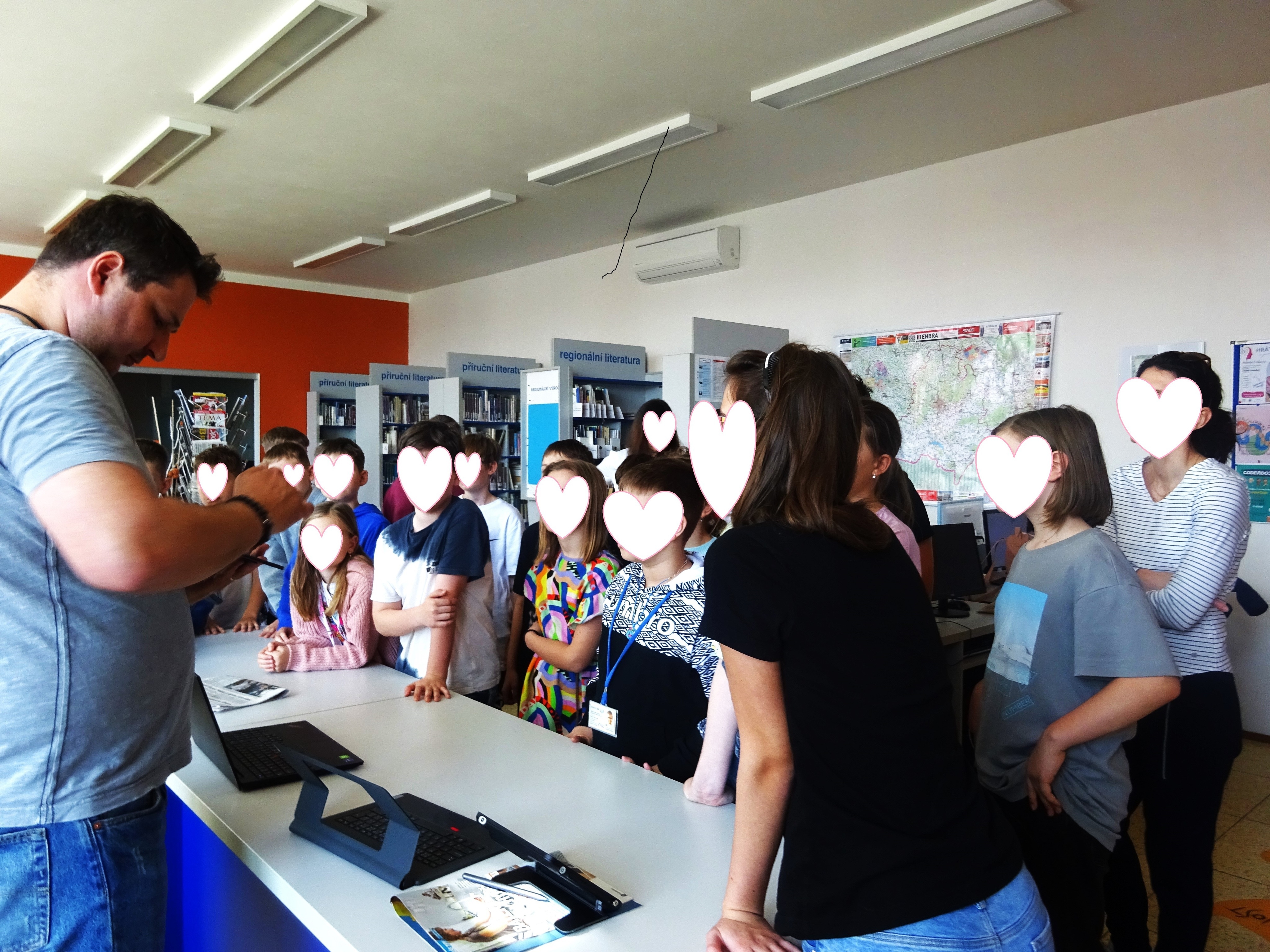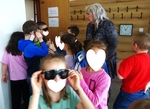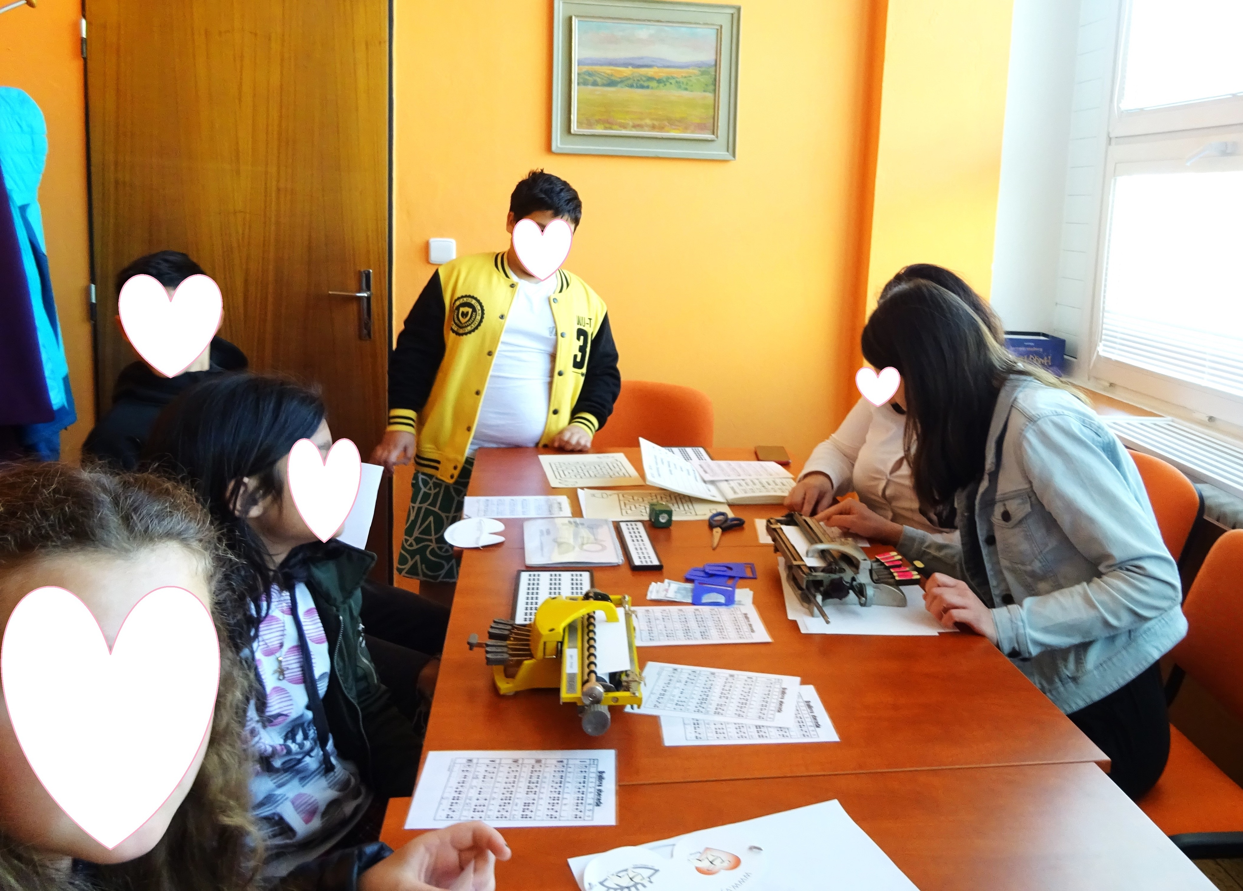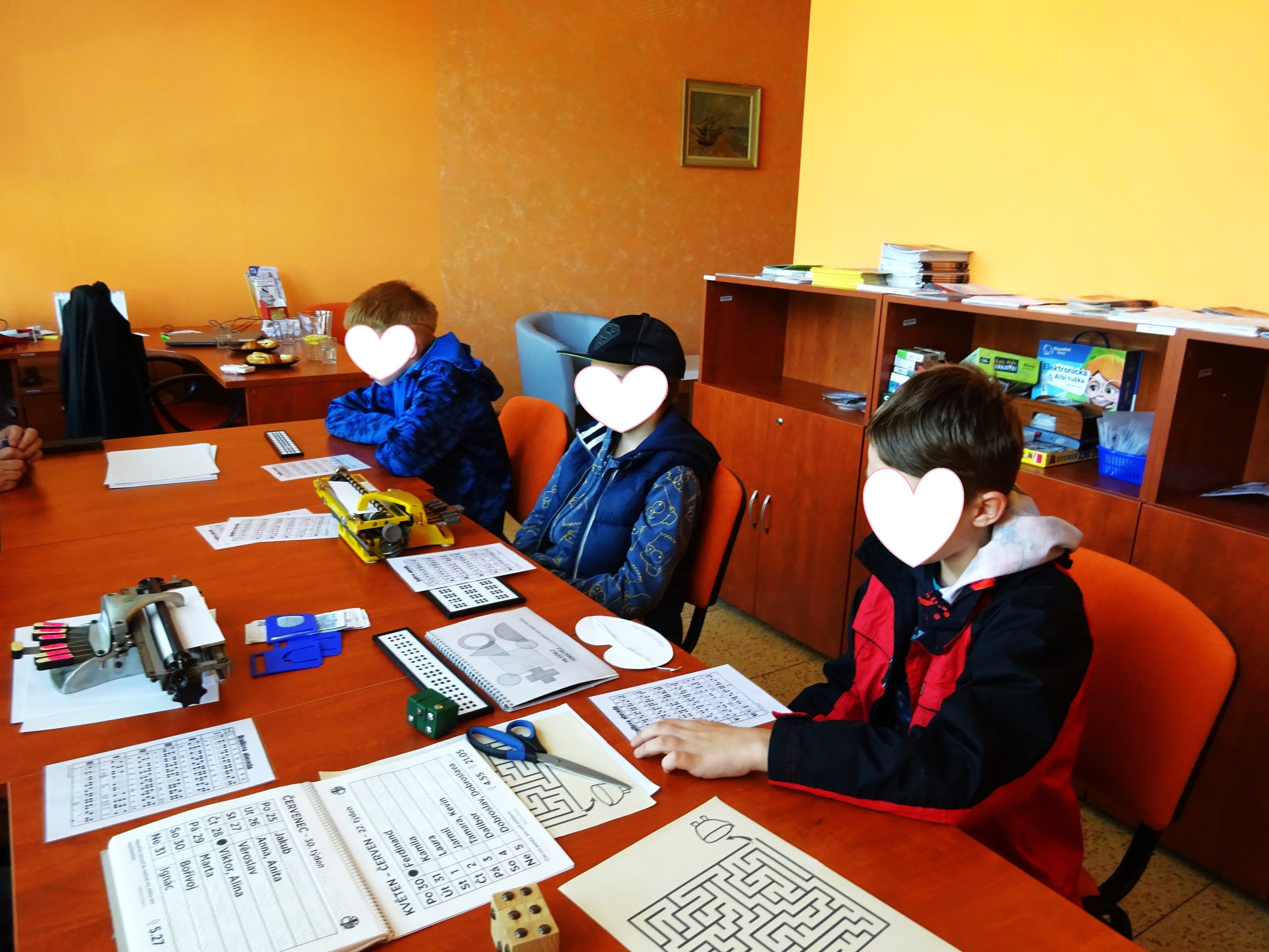 Osvěa byla celodení a nebyli jsme na to sami, přizvali jsme si na pomoc Školu pro výcvik vodicích psů, VODICÍ PES, z.s., která se zaměřuje na odbornou přípravu vodicích psů a Společnost Adaptech s.r.o. která je jedním z předních dodavatelů kompenzačních pomůcek pro zrakově postižené v ČR. Tyto dvě organizace měli po jednom stanovišti a my, se dvěmi jsme seznamovali dopoledne žáky základních škol z Hodonína a odpoledne veřejnost s Braillovým písmem, bílou holí a simulací různých stupňů slepoty.