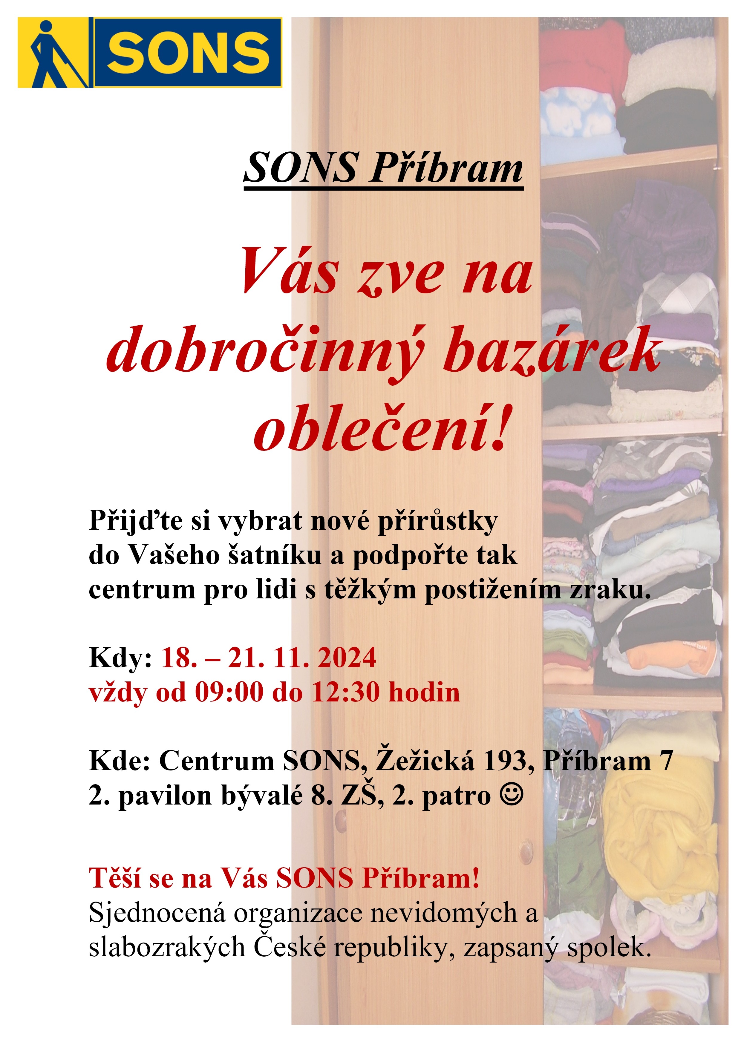 Vás zve na dobročinný bazárek oblečení!