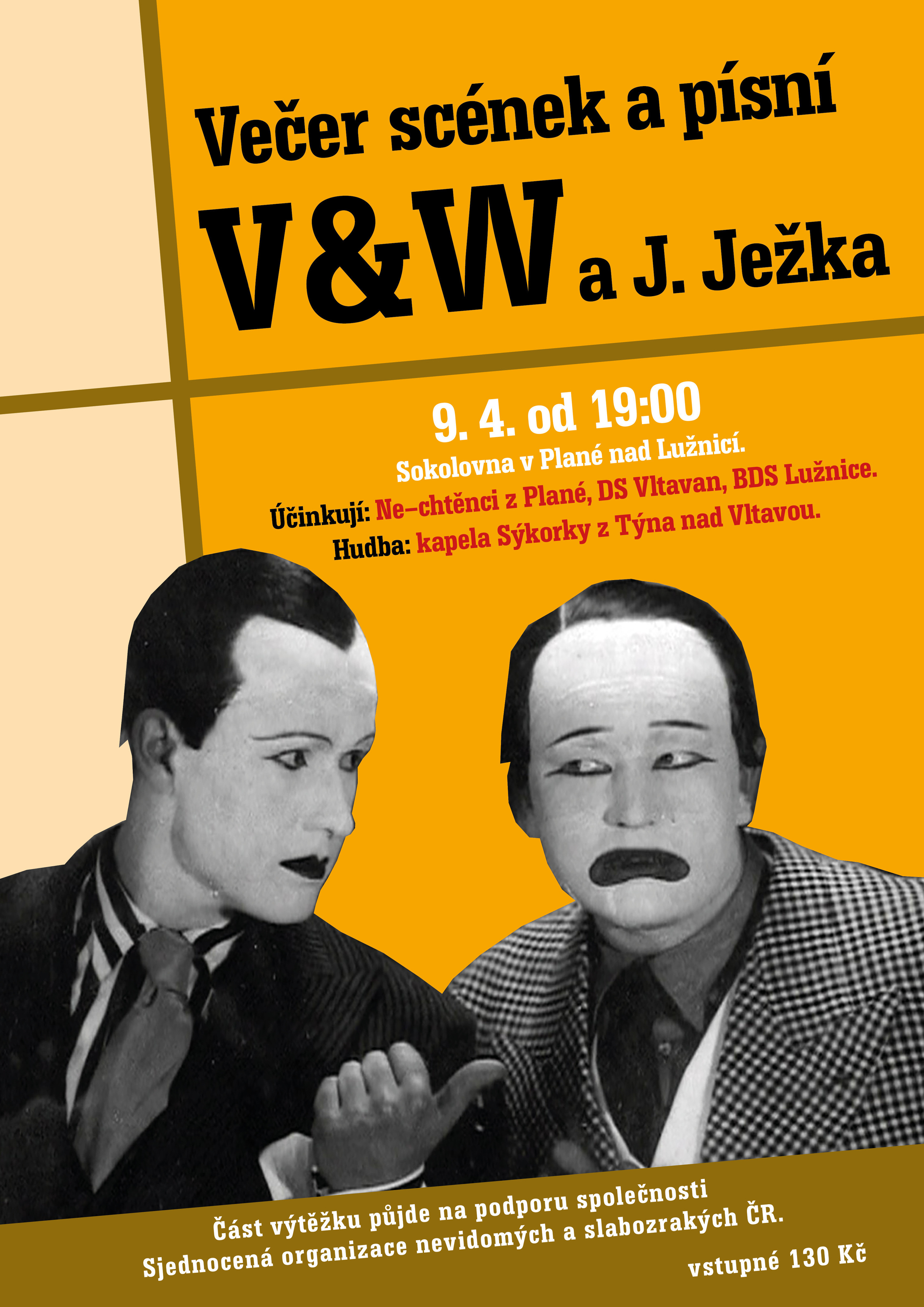 Srdečně vás zveme na výjimečný kulturní večer, který se ponese v duchu humoru, hudby a nestárnoucí tvorby Jiří Voskovec a Jan Werich a Jaroslav Ježek. Dne 9. dubna od 19:00 uvede Plánský divadelní soubor Ne - chtěnci pořad Večer scének a písní Voskovce, Wericha a Ježka.