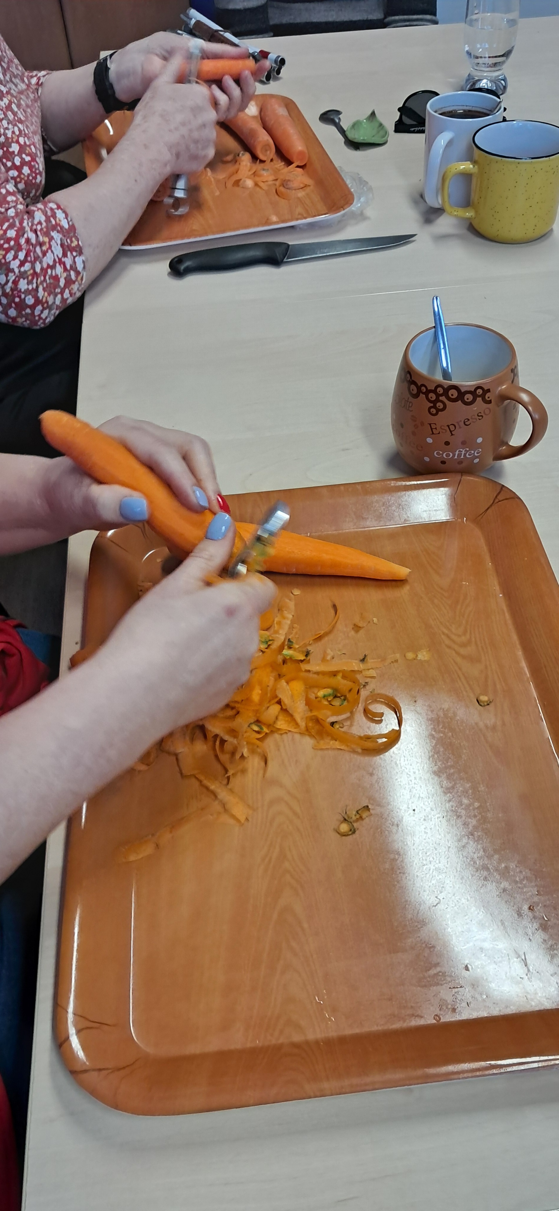 Kdo není rád, když dostane pozvánku na oběd? Tak jsme ji rozeslali. U nás ale každé poslední pondělí v měsíci pozvaní vědí, že sice něco dostanou, ale na přípravě jídla se budou i podílet. Přesto vždy dorazí a jídlo společně uvaří.