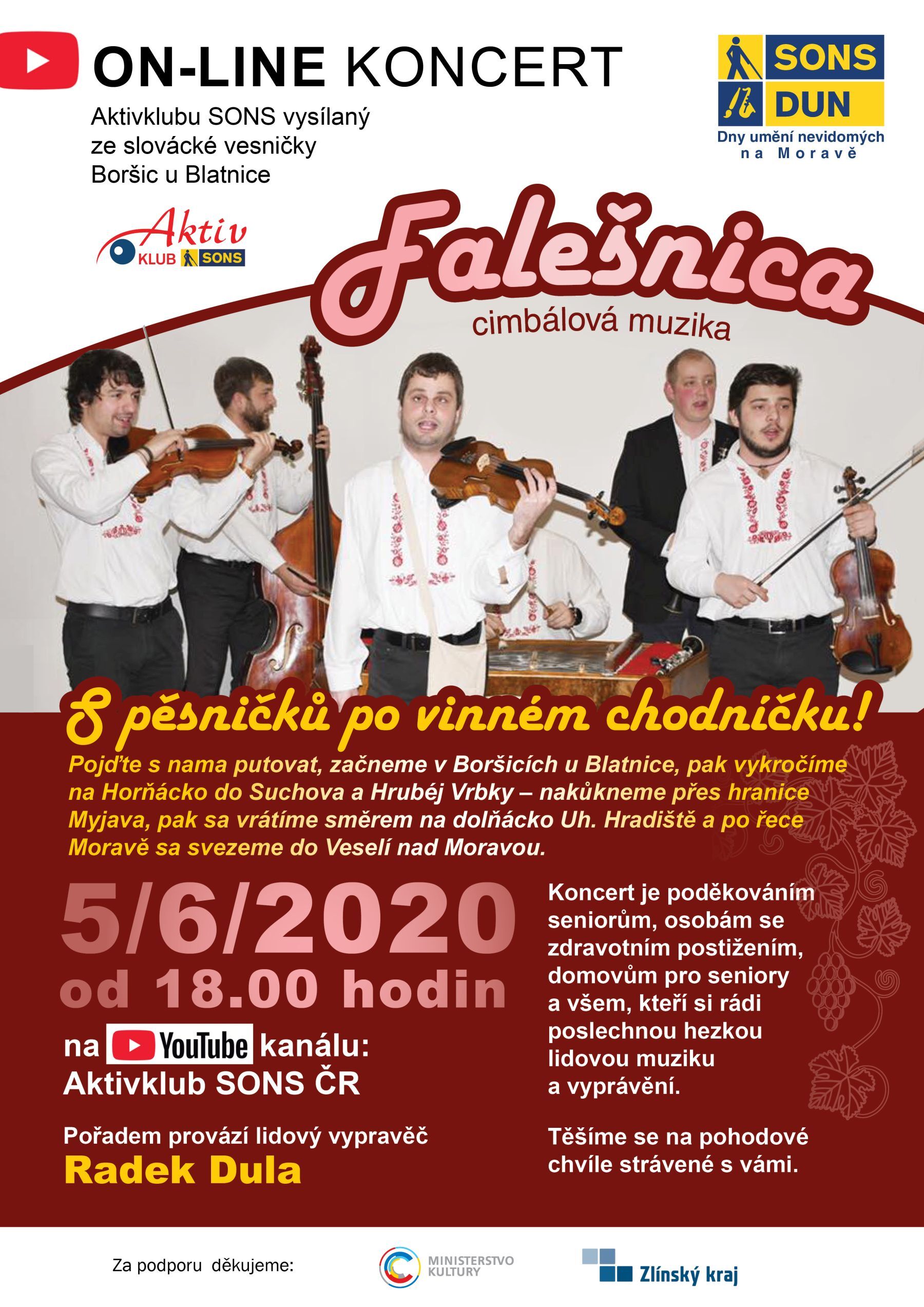 Pozvánka na online koncert cimbálové muziky Falešnica